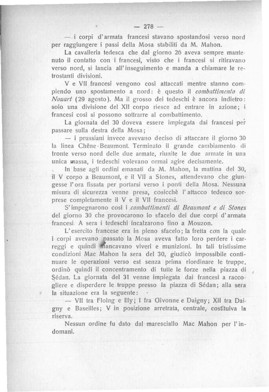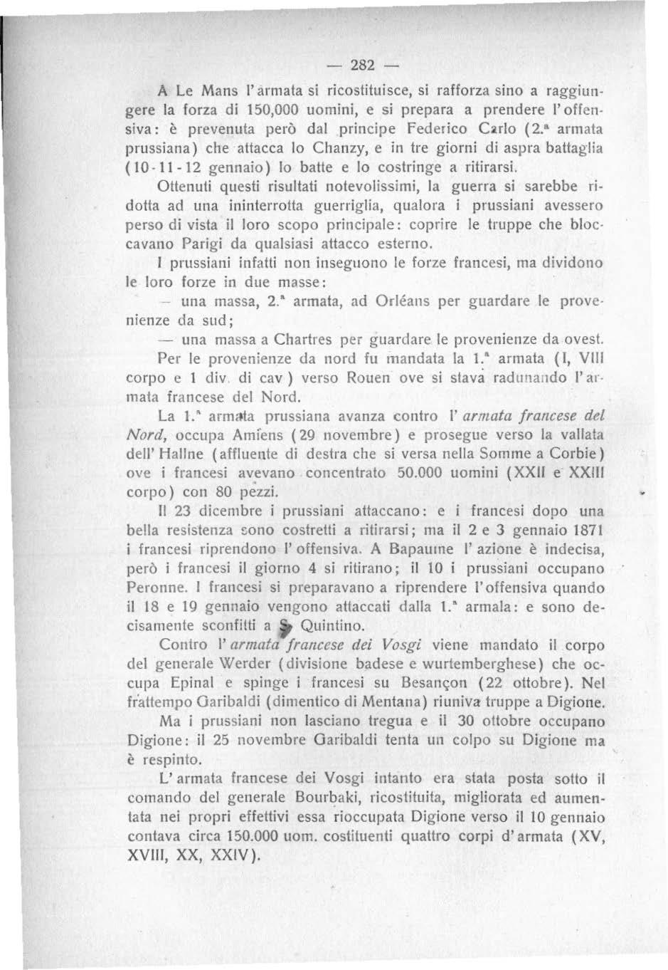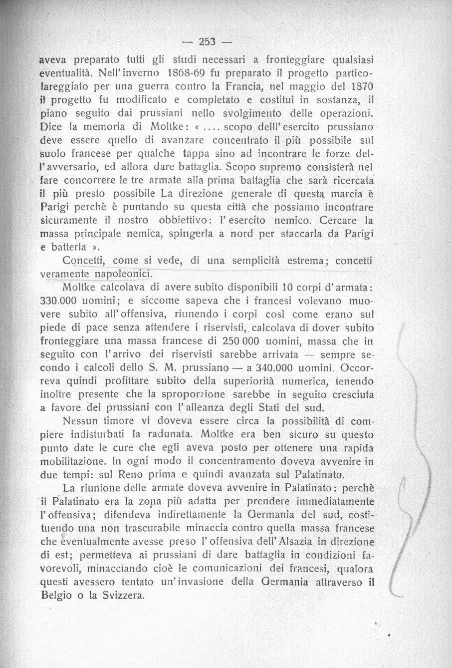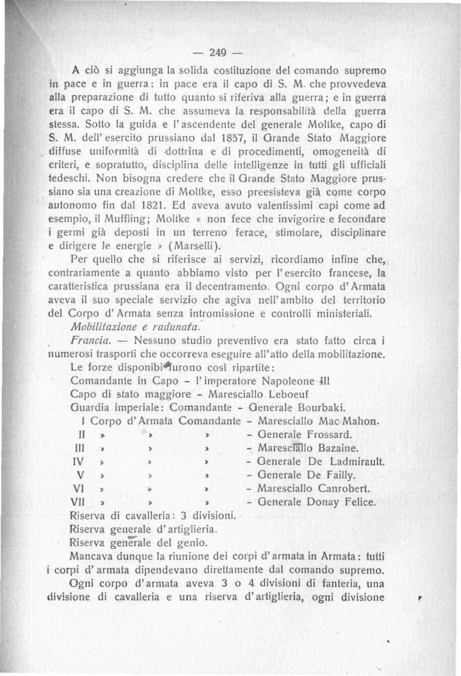 Il completamento dell'unità germanica attraverso la guerra franco prussiana del 1870· 71. - Le operazioni di questa dall'inizio fino all'investimento di Metz e quelle contro l'armata di Chàlons. - La resistenza francese dopo Sédan. - Il trattato di pace di Versailles. - La definizione della questione Romana. pag 243
