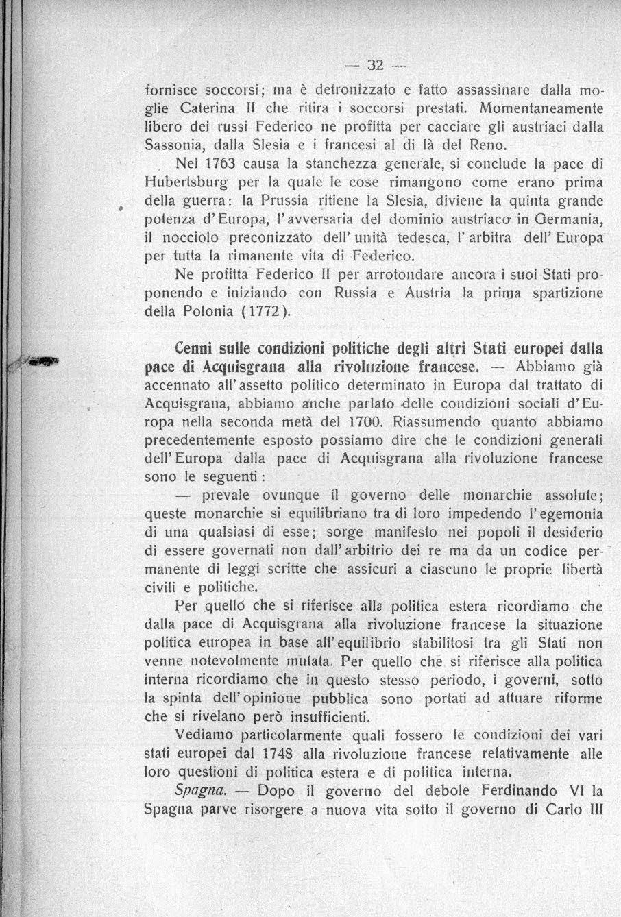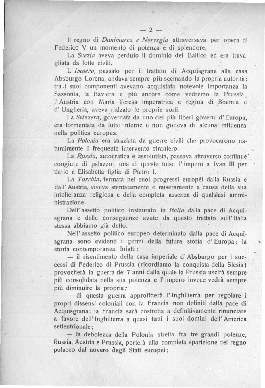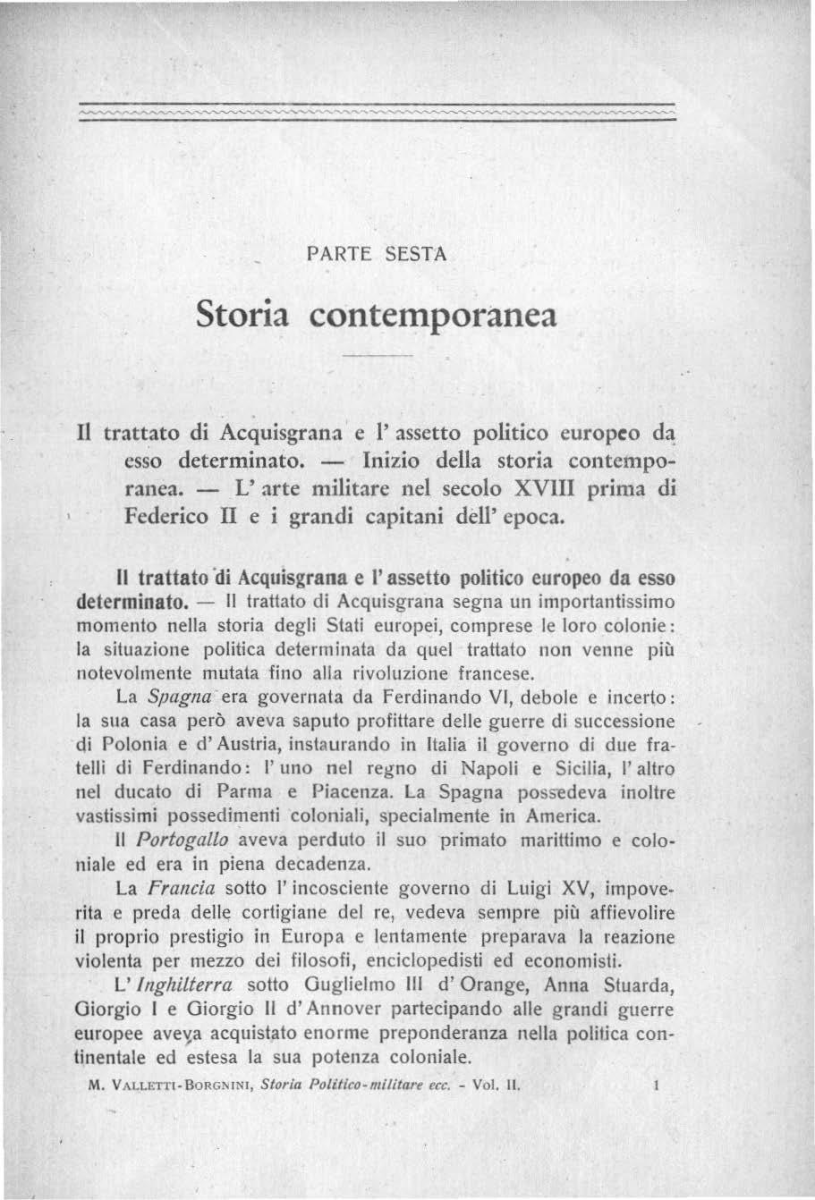 Il trattato di Acquisgrana e l' assetto politico europeo da esso determinato. - Ini zio della storia contemporanea. -L ' arte militare nel secolo XVIII prima di Federico II e i grandi capitani dell' epoca.