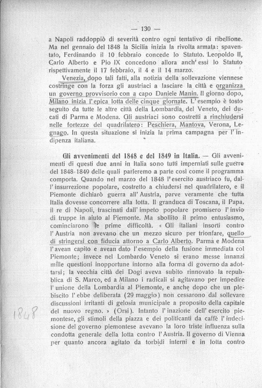 Oli avvenimenti del 1848 e del 1849 in Italia e principali Stati Europei :.
