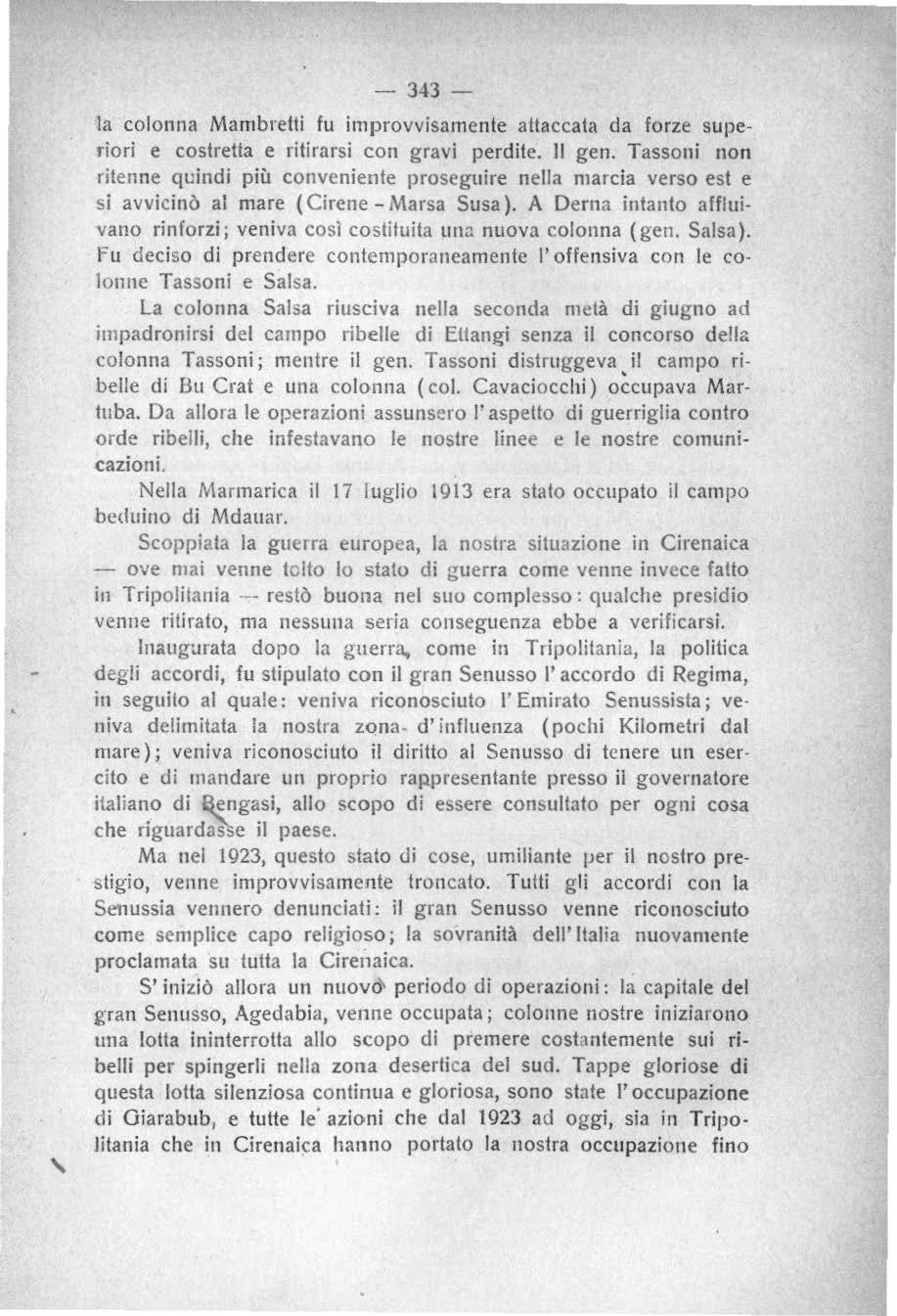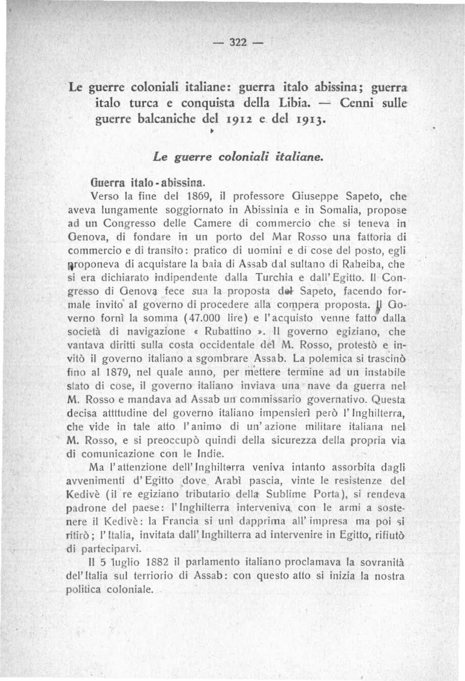 Guerra italo-abissina. - L'azione dell'Italia in Somalia. - Guerra italoturca. - Cenno schemallco sugli avvenimenti svoltisi in libia dalla conclusione del Trattato di Le>sanna ad oggi.