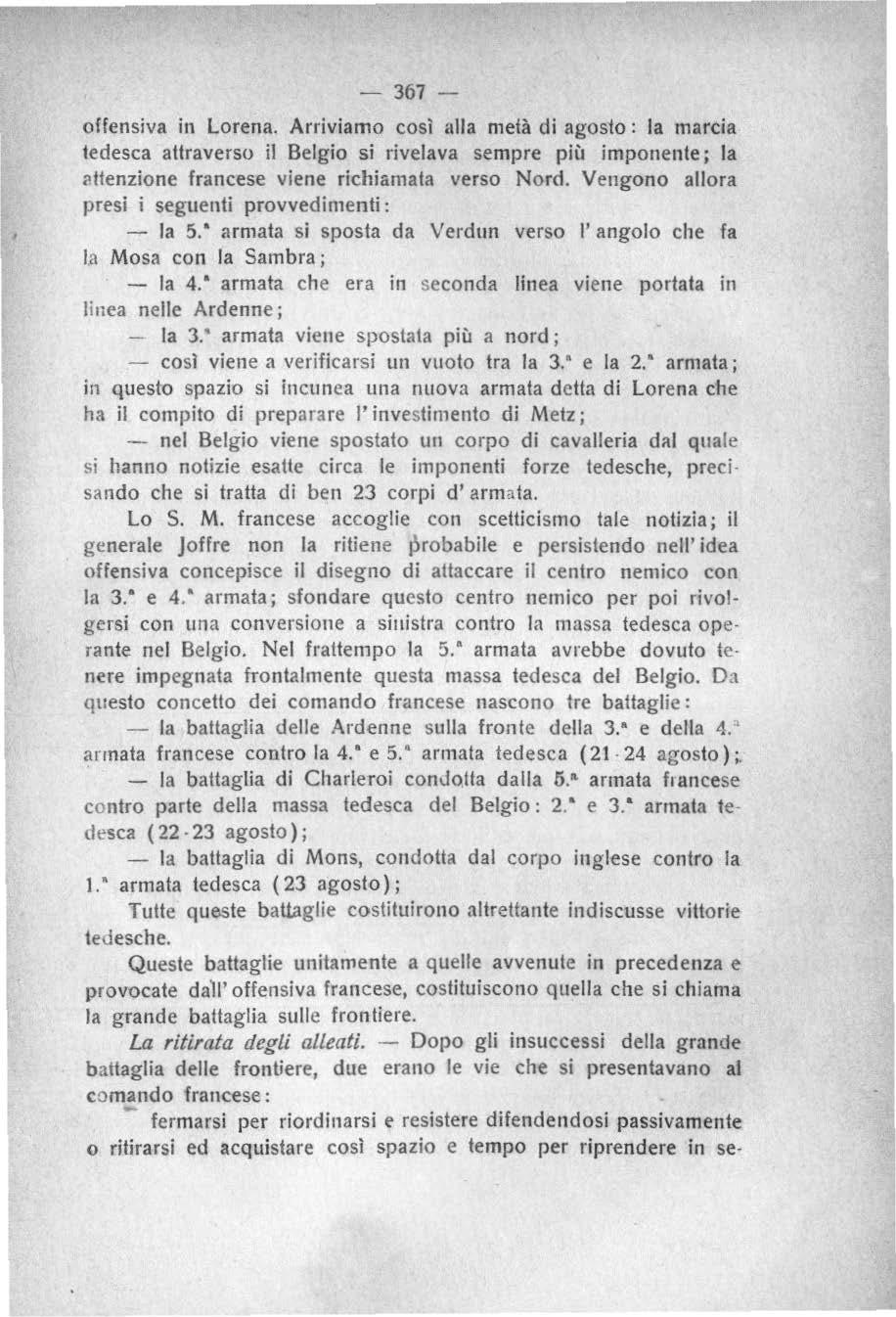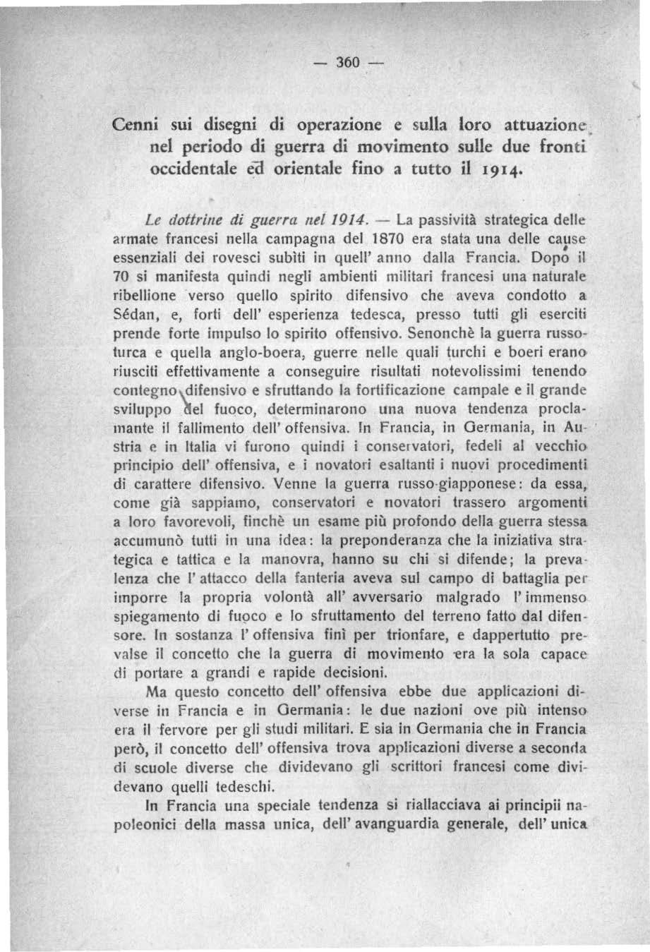 Cenni sui disegni di operazione e sulla loro attuazione nel periodo di guerra di movimento sulle due fronti occientale ed orientale fino a tutto il 1914 360