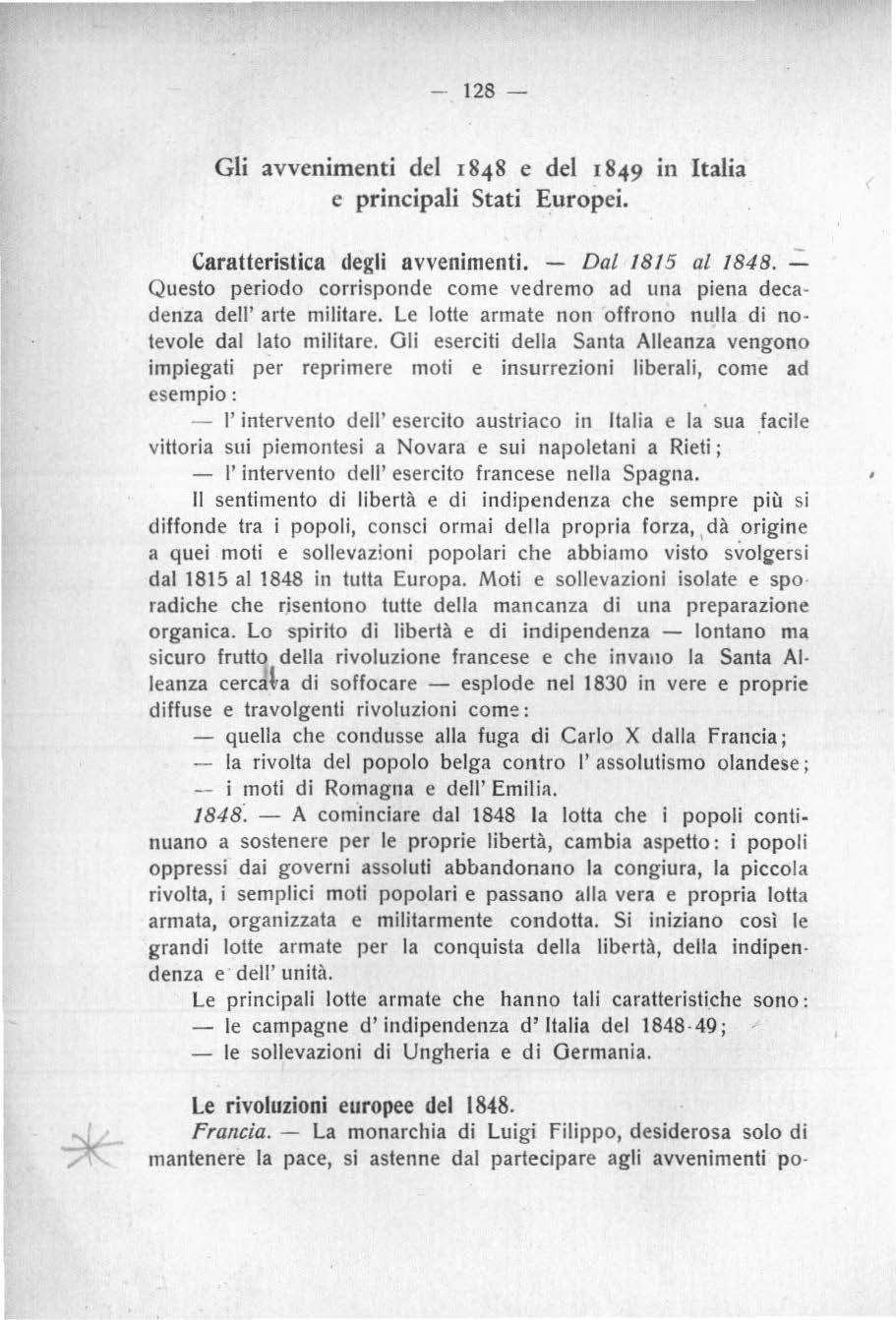Caratteristica degli avvenimenti. - Le rivoluzioni europee del 1848.Moti, riforme e statuti in Italia. - Oli avvenimenti del 18 ! 8 e del 1849 in Italia.