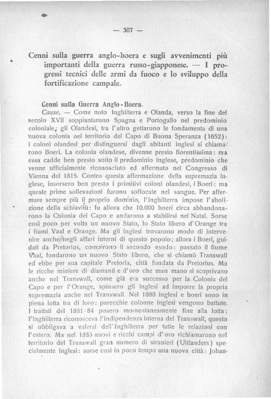 Cenni sulla guerra anglo boera e sugli avvenimenti più impor t anti della guerra russo · giapponese l progressi tecnici delle armi da fuoco e lo sviluJ7PO della fortificazione cat,lpale . . . .