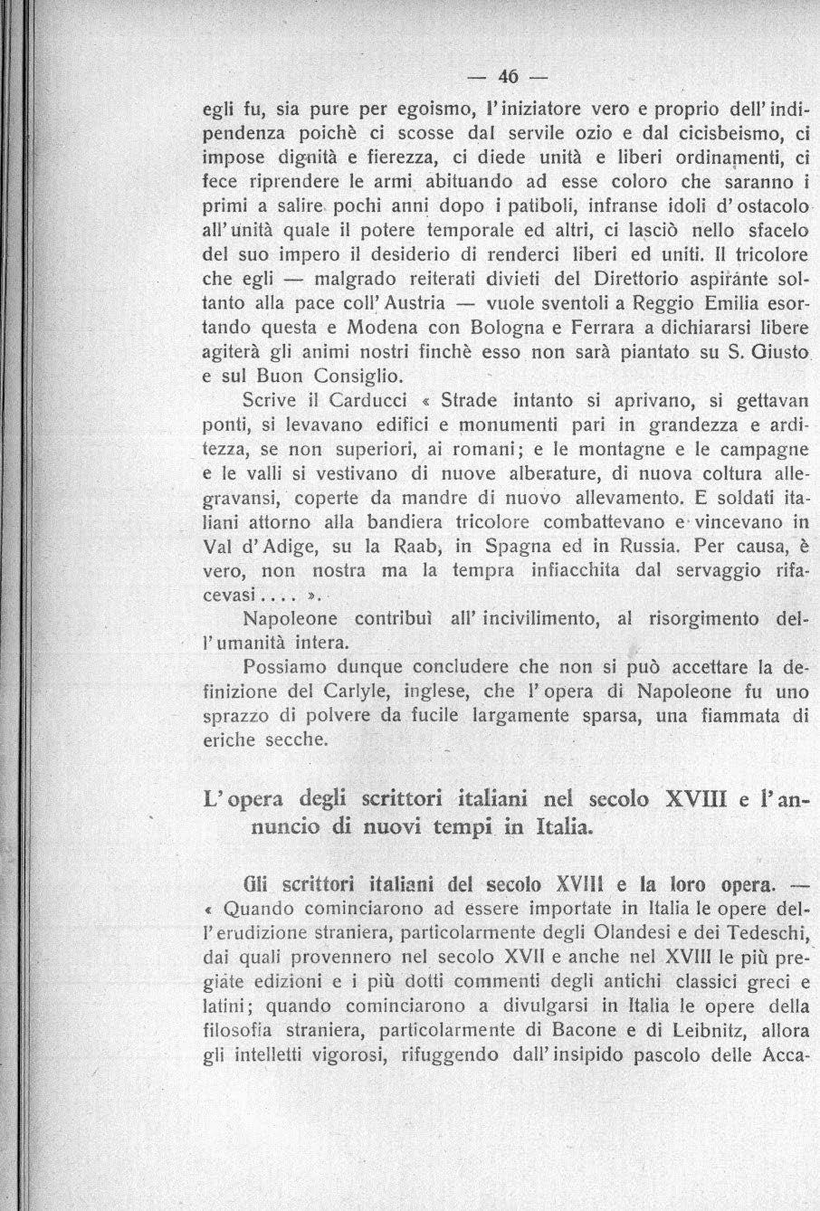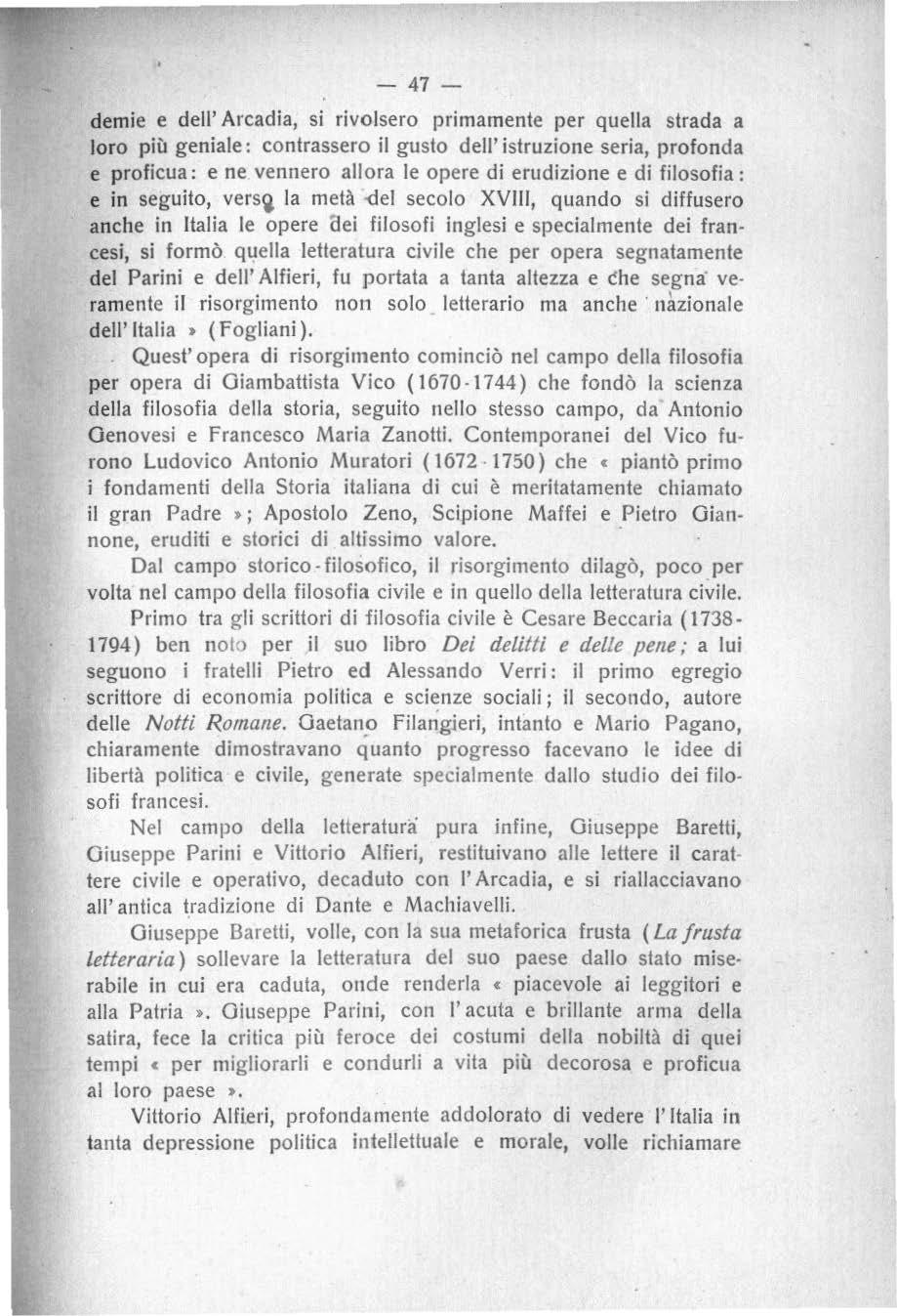 Oli scrittori italiani nel aecolo XVIII e la loro opera. - L' annuncio di tempi nuovi in Italia. - Le riforme negli stati italiani.