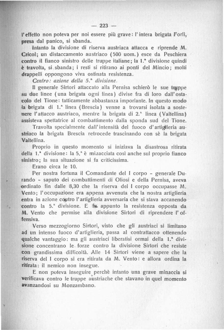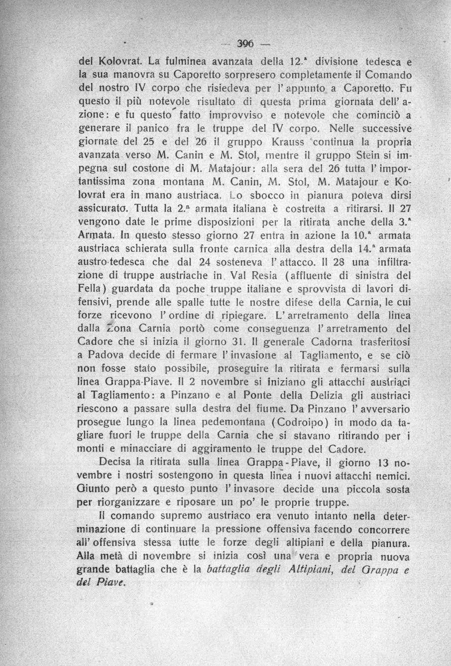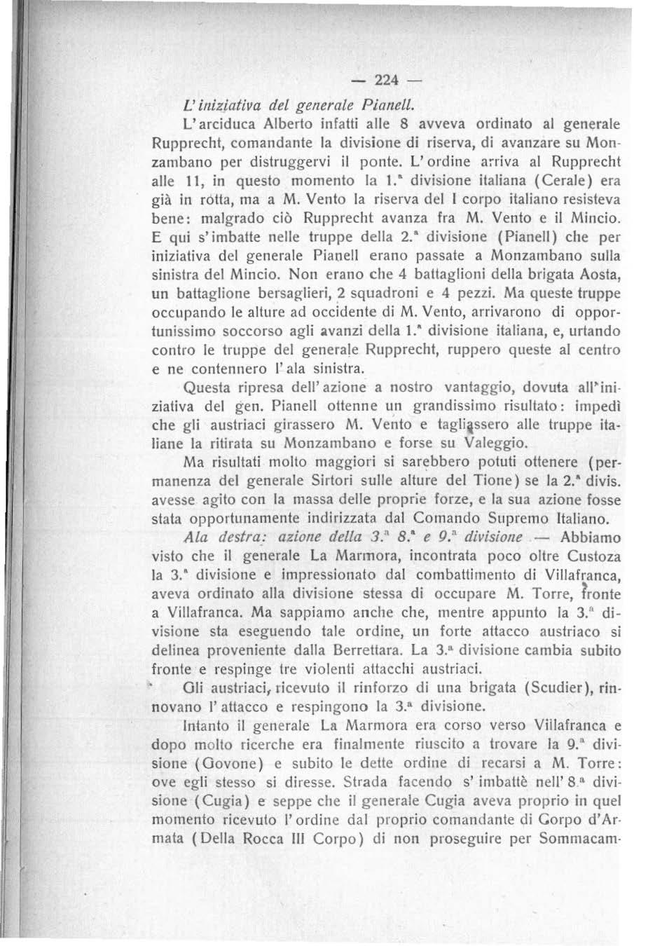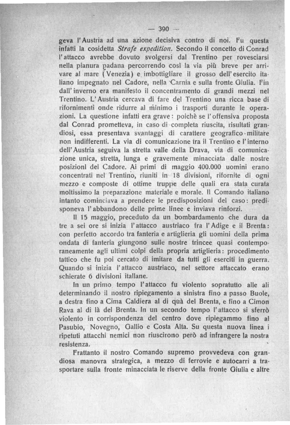 Il 31 si compiva la nostra manovra così come essa era stata concepita nel nostro piano d'operazione : la fronte del Grappa premuta di fronte e aggirata a sinistra, crollava: la nostra 4. • armata scendeva nel solco: fonzaso- feltre. L' 8. • armata vinta la resistenza nemica a lla s tretta di fad alto occupava Ponte nelle Alpi: Il corpo di cavalleria potèva entrare libe ramente in azione e si s pingeva al Tagliamento, mentre le armate 10: e 3: raggiungevano la Li venza. La nostra 6." armata attacca in direzione di Levico.