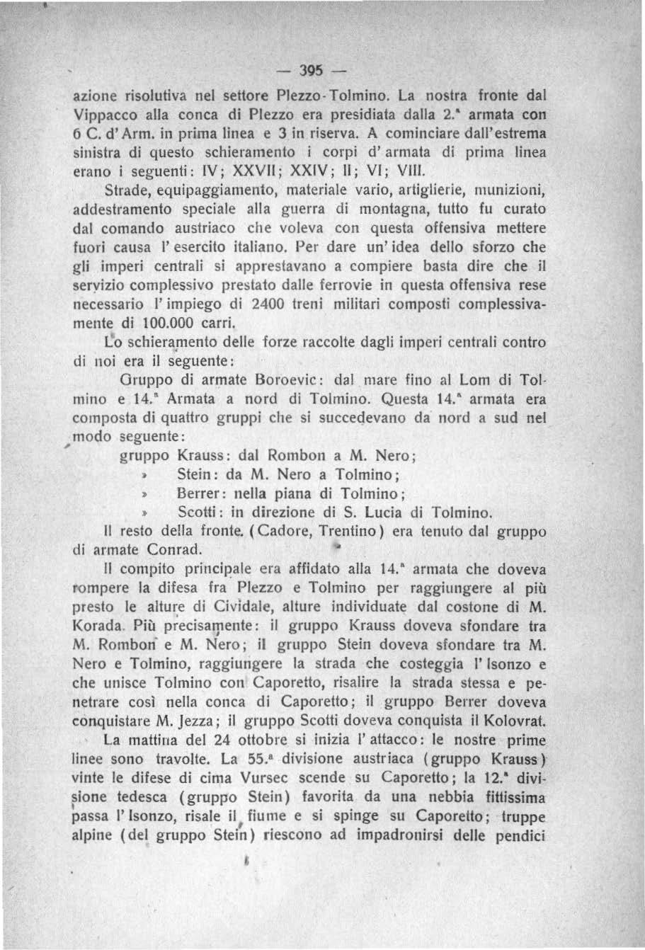 Il 1.0 novembre il comando supremo italiano ordinava l' avanzata generale di tutte le armate: la 7... armata per Val di Sole doveva punt are su Bolzano; la l. • per la valle dell'Adige direttamente su Trento; 6. • doveva puntare sulla linea Enia Trento; la 4.• sulla linea Enia Bolzano; l' 8. • armata su Brunico; tutto ciò per a nni entare la massa austriaca del Trenti no se rrand o la in una morsa.