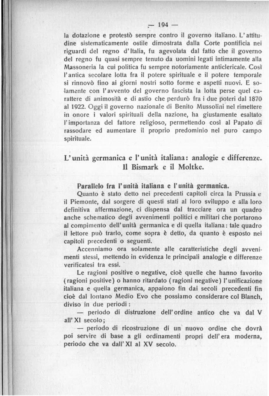 L'unità ge rman ica e l'unità italiana: analogie e differenze. Il Bismark e il Moltke • • t94