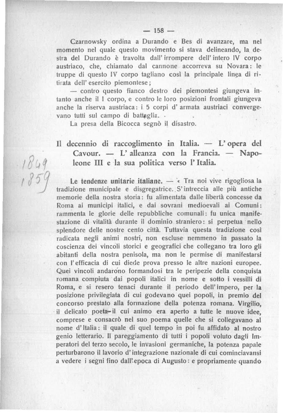 l e tendenze unitarie italiane. - Au stria e Piemonte dopo Il 1849. - Napoleone 111 e la sua politica verso l ' Italia.