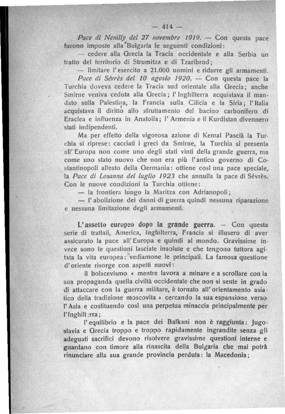 Pace di Nenilly del 27 novembre 1919. - Con qu esta pace furono imposte alla le seguenti condizioni: