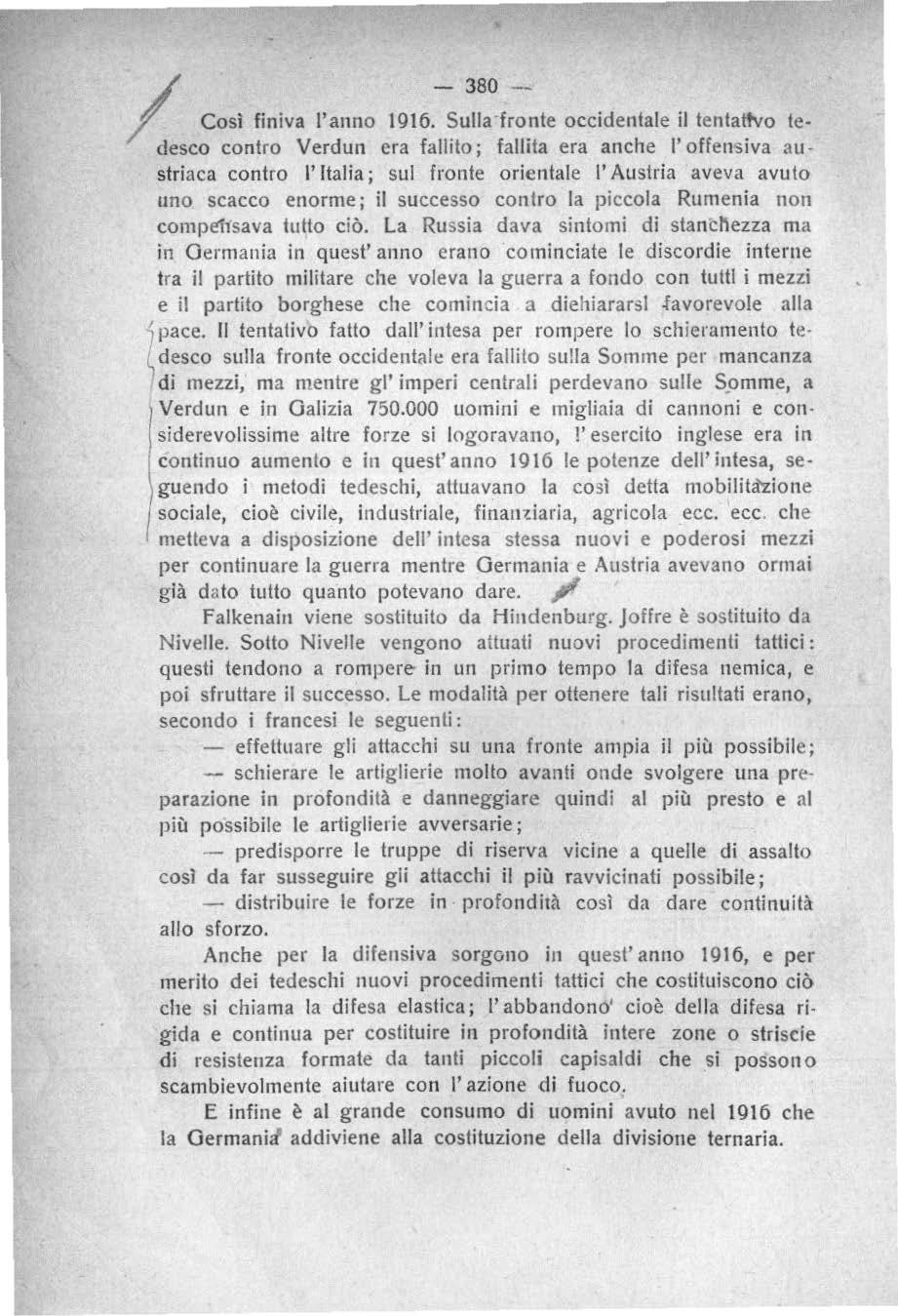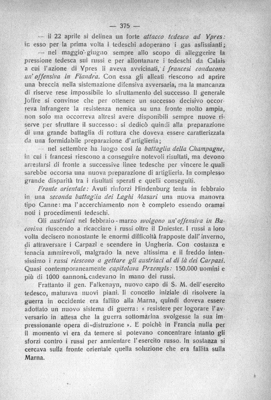 Notizie sommarie sull'ulte r iore svolgimento della guerra mondiale con riferimento alle caratteristiche più salienti della guer r a di posizione