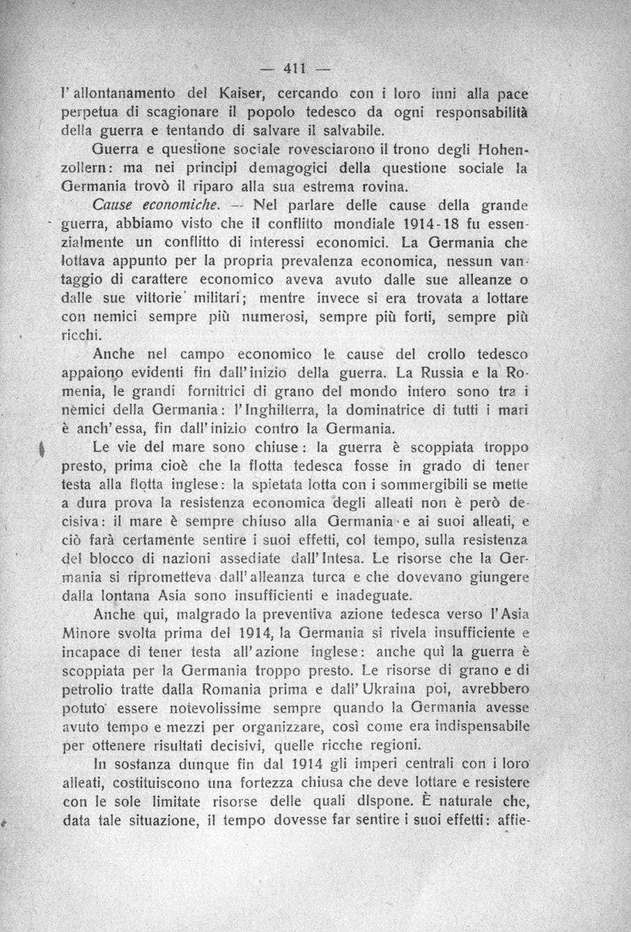 Il c r ollo della resistenza degli imperi centrali; cause militari, politic he, sociali ed economiche. - l trattati di pace e l'assetto e u ropeo e c oloniale dopo la grande guerra • • 404