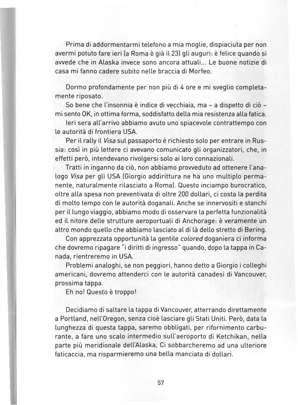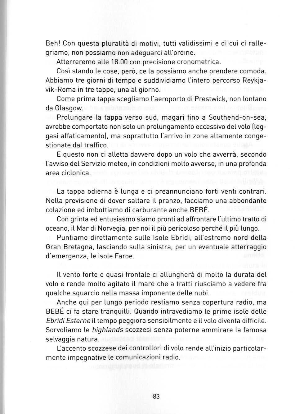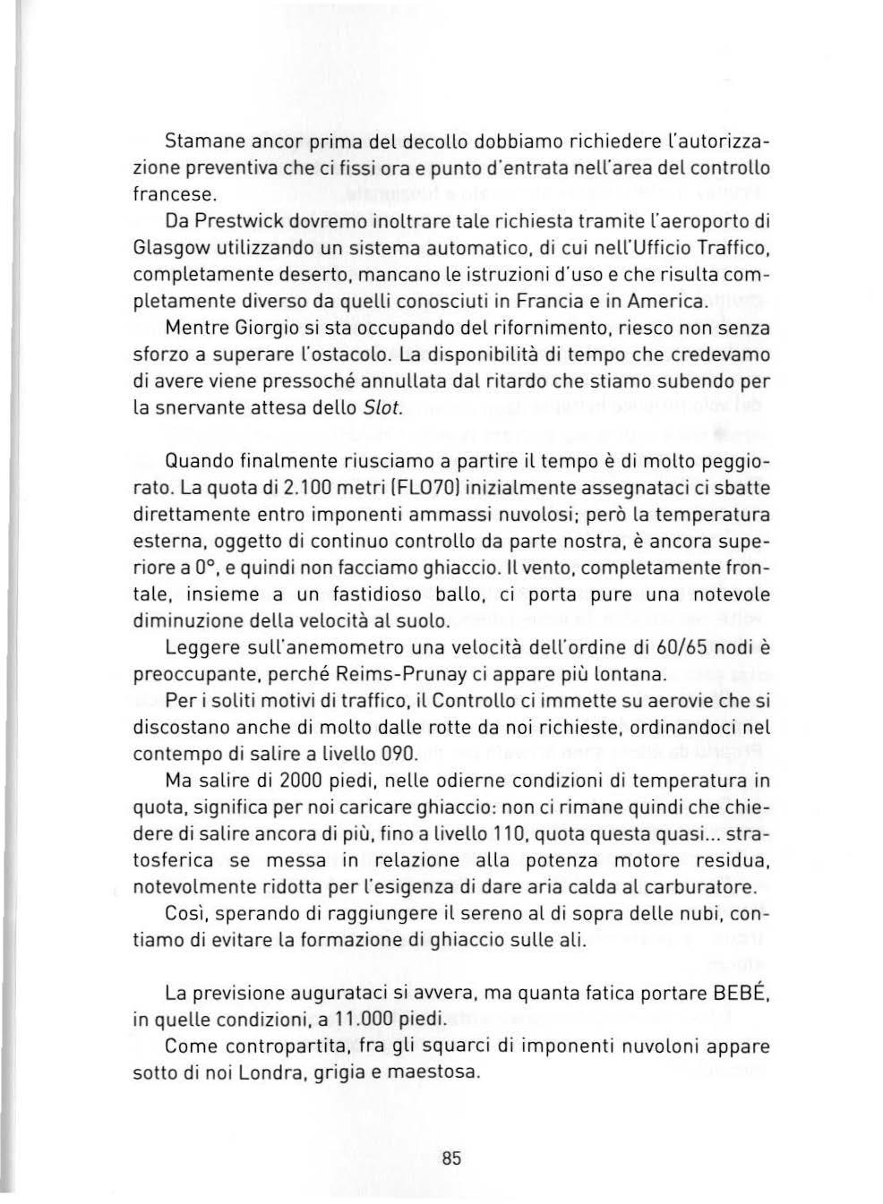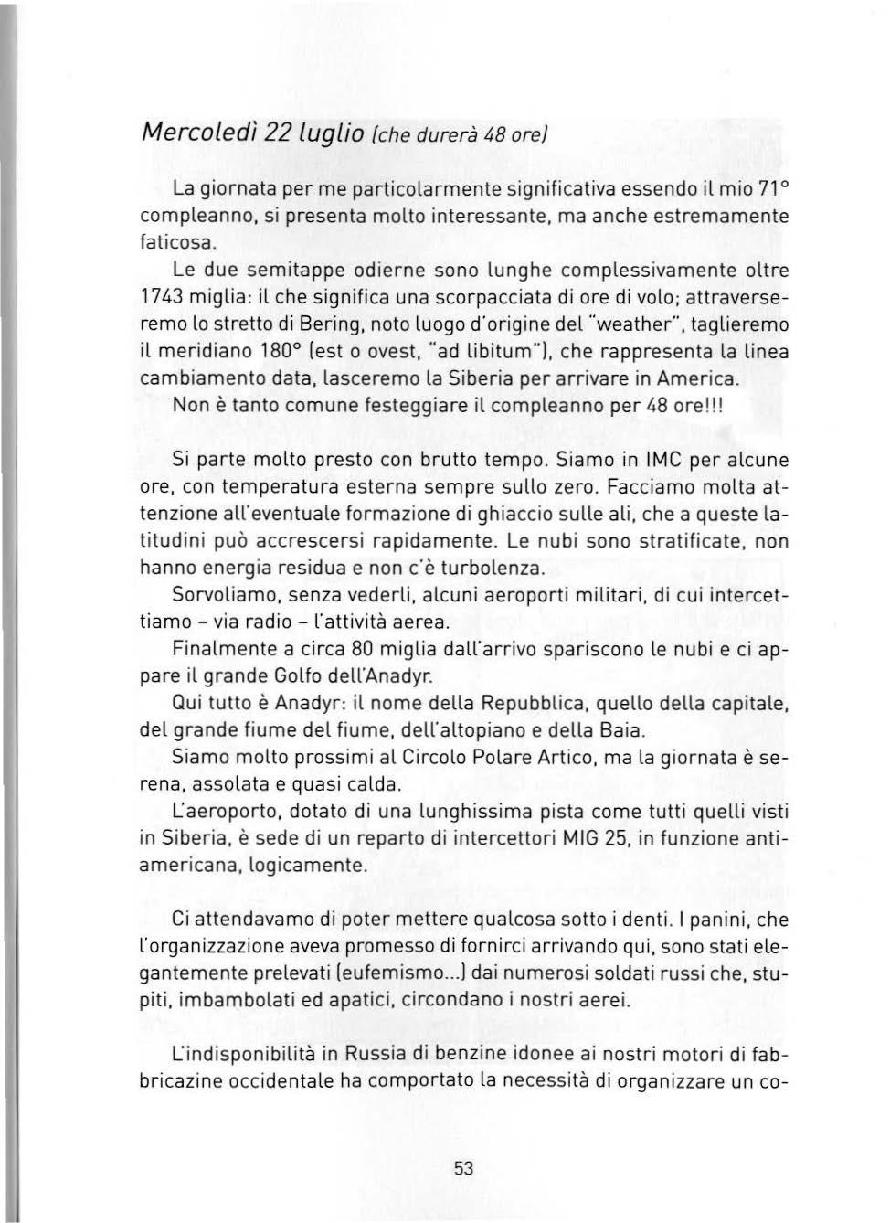 «My traveling companion heroes were two retired /talian generals, one 71 and the other some 74 years of age, wh o made the trip in a Piper Archer. At the end of each leg they announced how that leg was "just magnificent"».