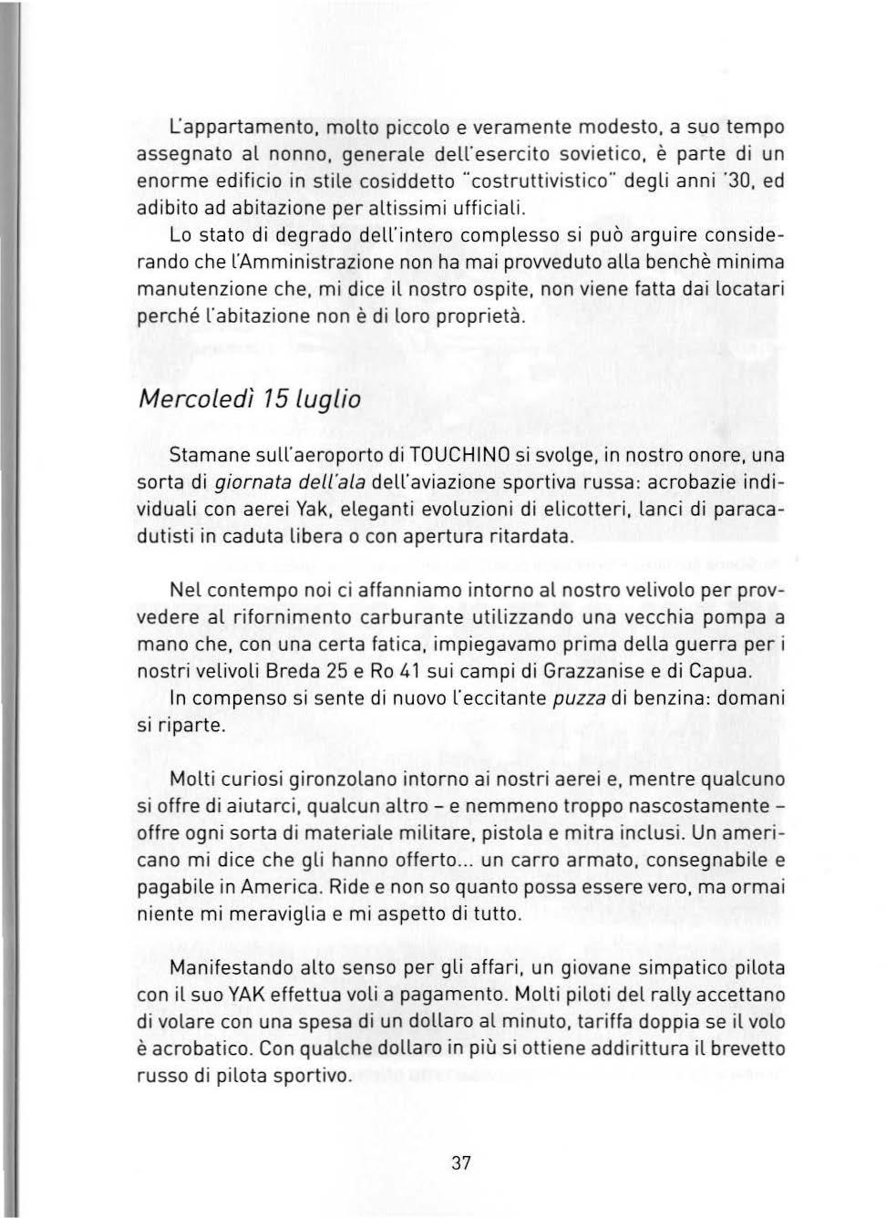 D'impulso, affascinato dalla notizia, senza nemmeno chiedere indicazioni sul tipo di aereo. sulla rotta, su tempi e costi dell'impresa, mi offro di partecipare come co-pilota, come navigatore, come interprete, come addetto alle relazioni pubbliche, come fac-totum, portaborracce, lustrascarpe et similia.