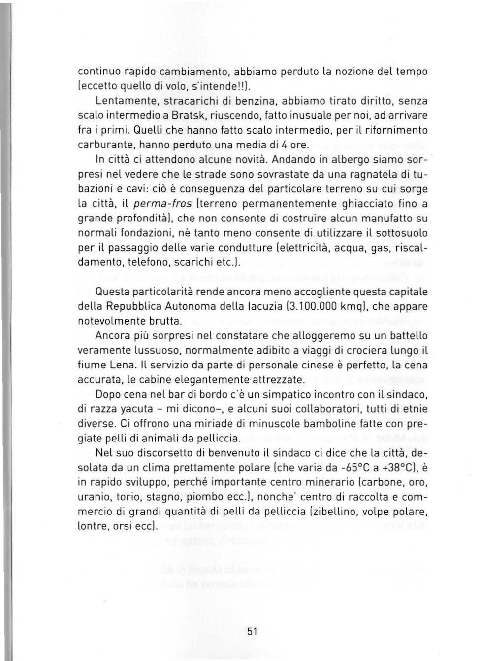 Il forzato amaro rientro a Roma in treno è stato compensato dalla considerazione che non tutt i i mali vengono per nuocere: il solo pensiero che se quell'a varia ci fosse capitata durante una tappa in Siberia saremmo stati veramente nei ... pasticci ci ha fatto accettare l'inconve niente con certosina pazienza
