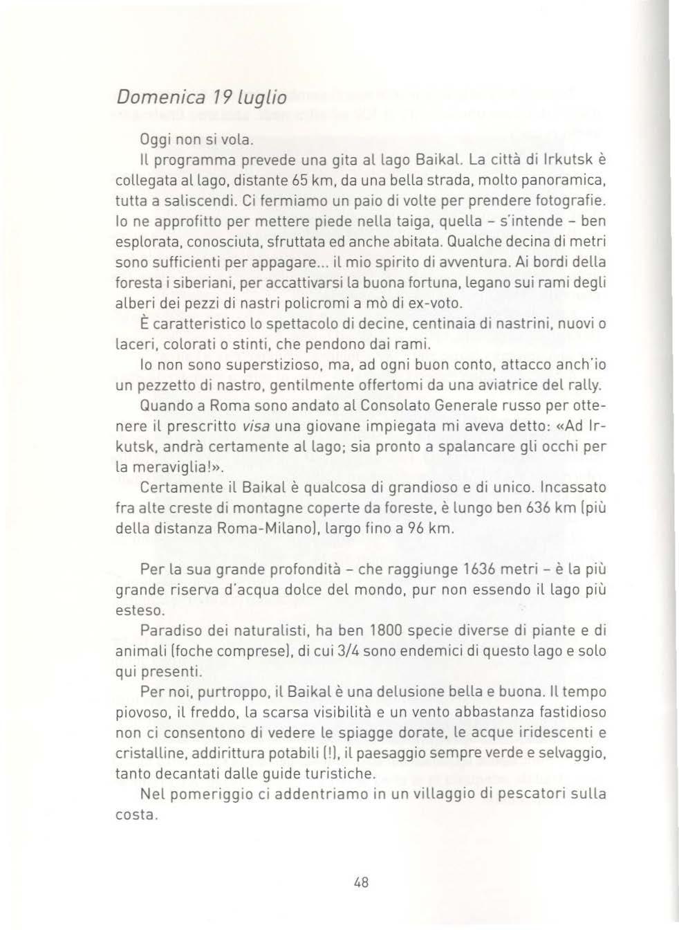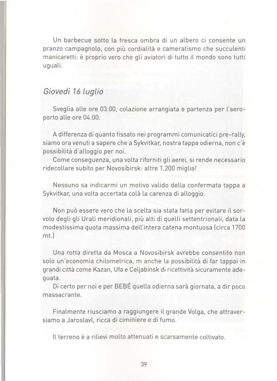 L.:ambiente aviatorio internazionale ha mostrato vivissimo interesse, ma le obiettive difficoltà al momento ignote, ma certamente presenti in zone forteme nte ostili dal punto d i vista della na tura e delrambiente meteo ro log ico , la lunghezza delle s ing ole tappe con con seg uente gra ve im patto sulla fatica fisica e psichica dei partecipanti, le incognite sempre immanenti nella prima edizione di un qualcosa totalmente nuovo, gli ostacoli particolarmente difficili da su perare in caso di avarie tecniche, nonchè gli elevati cos t i di part eci paz i on e, ha nno comportato una forte li mitazione ad una massiccia partecipazione di equ ipaggi, specie europei.