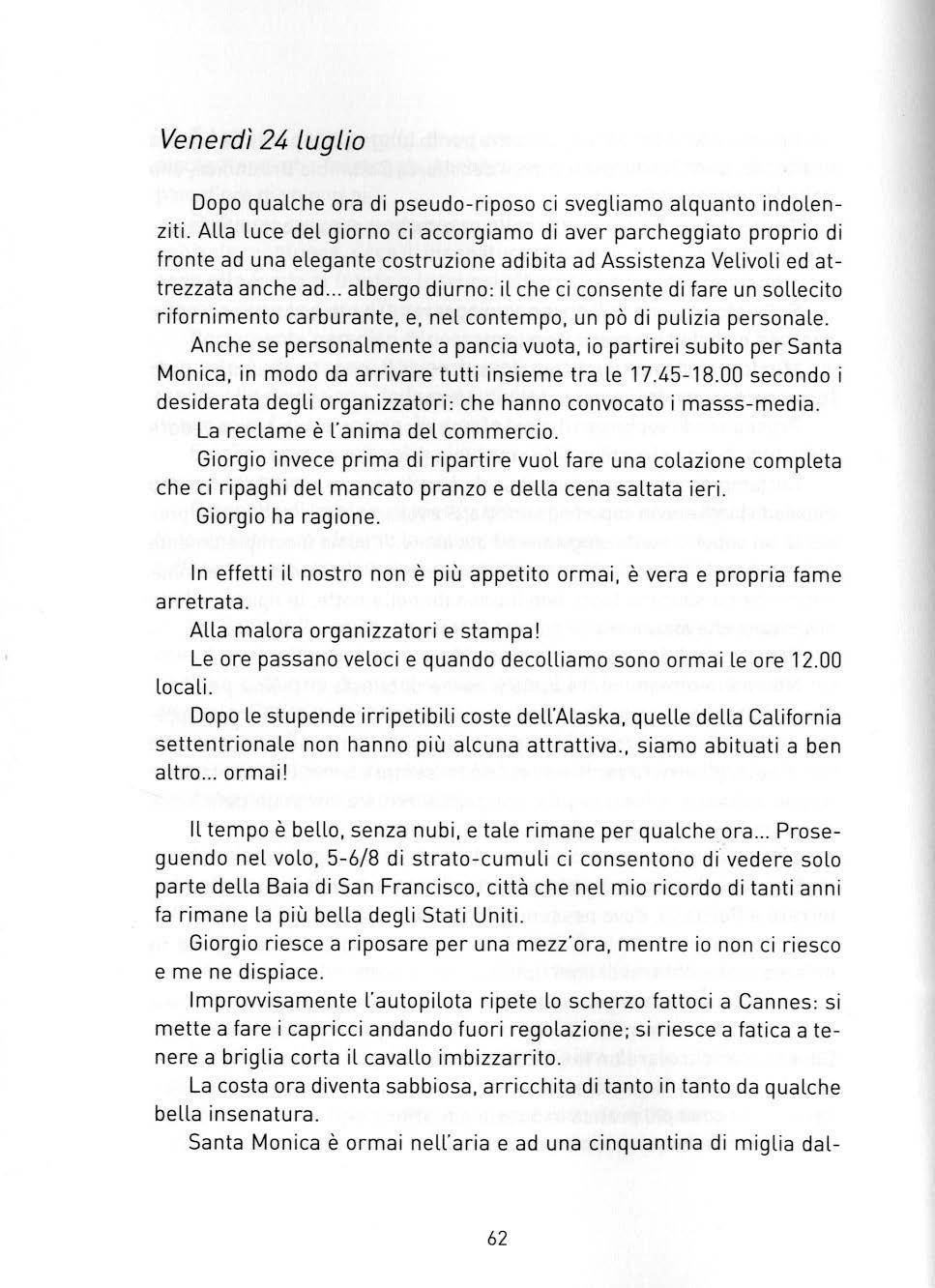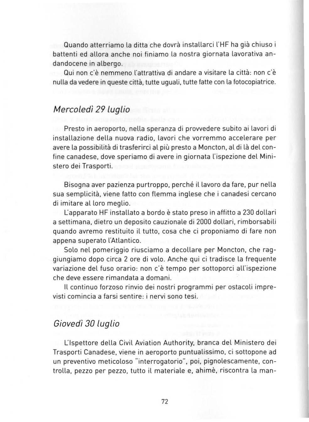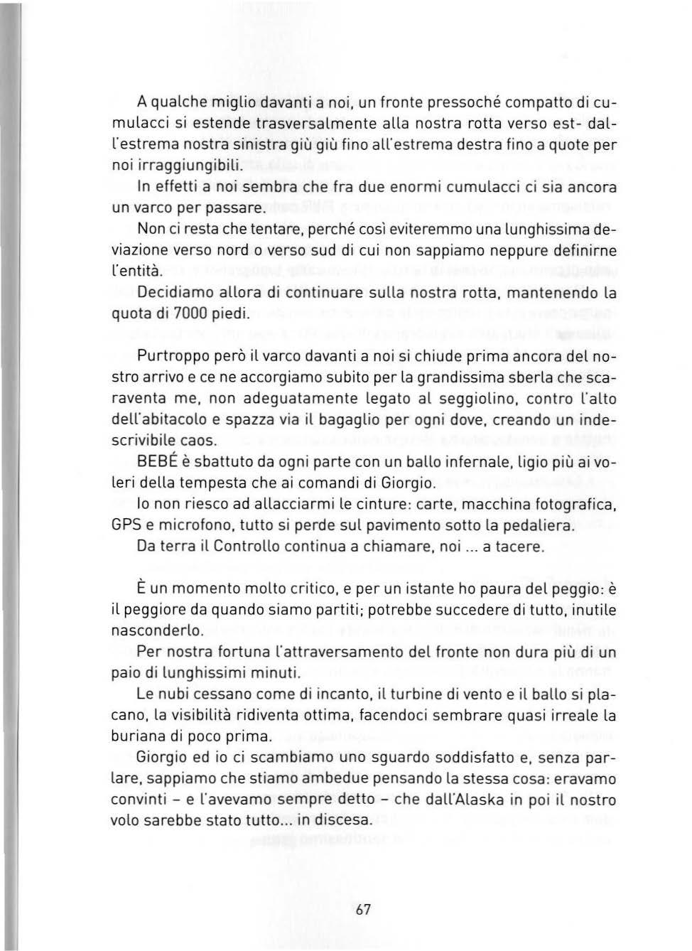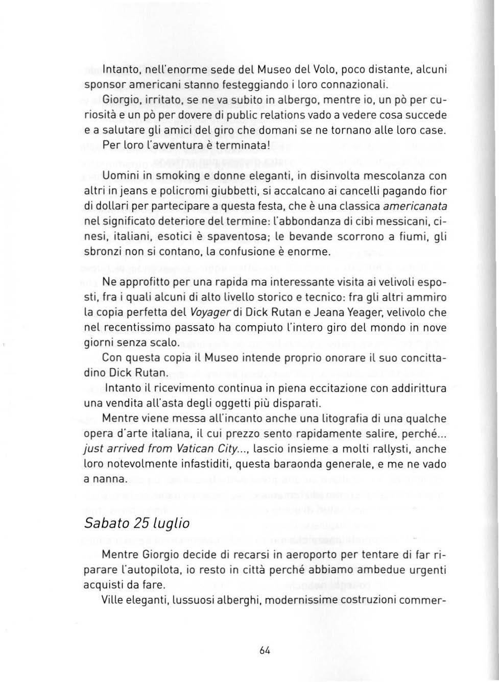 Infine a Giorgio, compagno d'arme da oltre 50 ann i, con l'espressione della mia amiciz ia va un grazie affettuoso e cord i ale per avermi accet tato come pa rtner i n questo periplo del mondo che concretizza un m io sogno di ragaz zo e m i consente d i concludere soddisfatto oltre mezzo seco l o di attività d i volo.