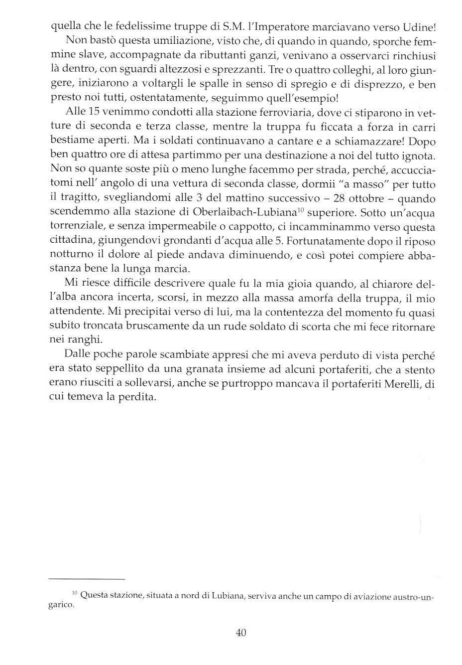 Invece dopo avermi "cicchettato" per un ciondolo della catena dell'orologio che pendeva da un tasch ino della divisa (a tanto si arrivava quasi di fronte al nemico!) si servì di me fino all'ultimo momento come "tappabuchi", inviandomi di quando in quando là dove necessitava un subalterno. Ciò mi faceva stare di mal animo, anche perché sovente mi ritrovavo alle dipendenze di un