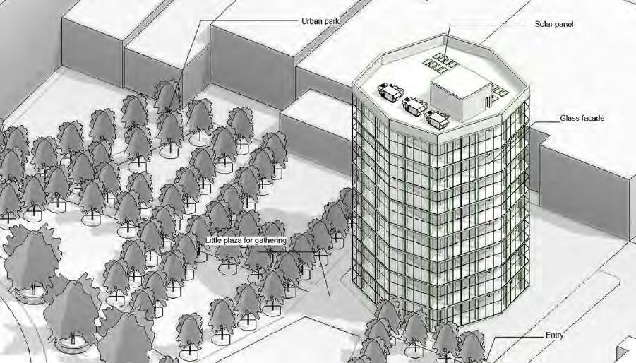 The concept centers on creating a vibrant community center with a ground floor that seamlessly opens to the neighborhood, fostering a strong connection with the surrounding area.