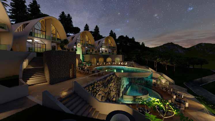 This eco-resort project, developed on a 24-acre mountain site in North Konkan, is designed to cater to tourism from surrounding cities while boosting the local economy. The resort offers stunning views of the Murud Janjira Fort and incorporates a banquet hall with amenities tailored to the growing trend of destination weddings. The design harmonizes with the site’s topography, utilizing natural elements such as a manmade waterfall that complements an existing natural one between the site’s two peaks. The resort operates sustainably, with its own food production and electricity generation. Bamboo, a sustainable construction material, reduces the carbon footprint, aligning with the resort’s eco-friendly concept.