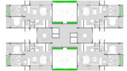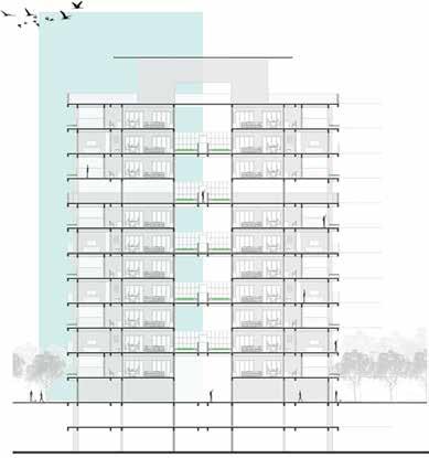 The concept of assisted housing is to create shared spaces which would affect the social life of people. In today’s time it is very important to interact with people of all age groups in order to affect the human psychology for good. Communal spaces on ground and also in the apartments would help contribute this concept. Designing circulation routes that offer spots for meeting and chit chating, offering identity to common spaces and creating the landmarks in the building, not only providing green spaces on ground level but also providing them on vertical level