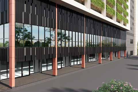 Creeper screens are applied to otherwise blank walls to create visual delight, absorb sunlight and carbon and create oxygen in the dense urban environment. Most available horizontal and vertical surfaces are landscaped;