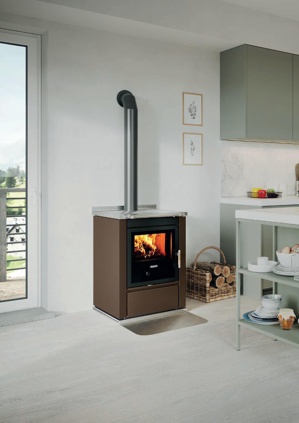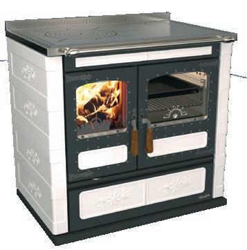 Připojení kouřovodu horní nebo zadní Sporáková plotna z kvalitní oceli tloušťky 8 mm, nebo sklokeramická deska Bypass spalinové cesty pro roztápění