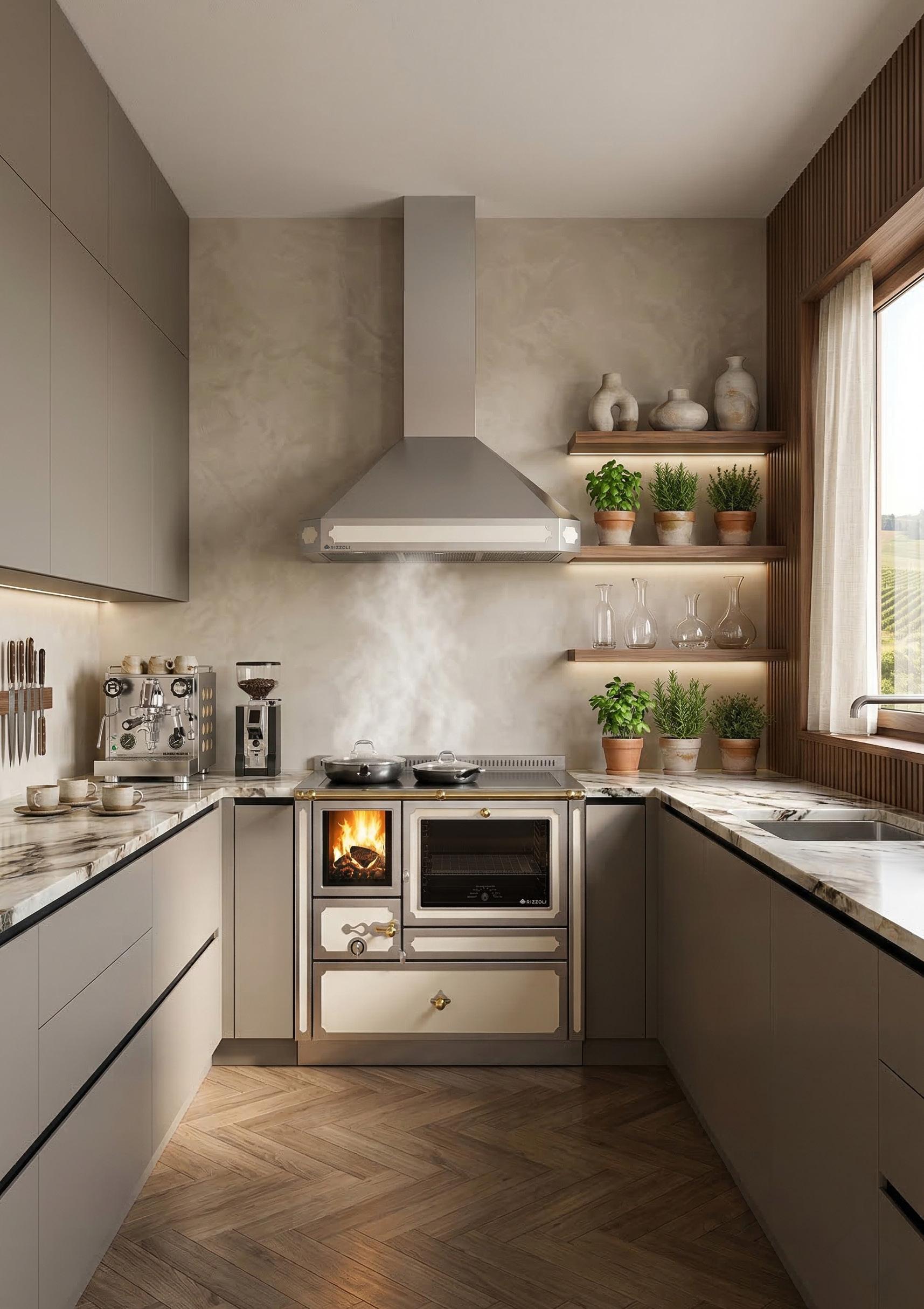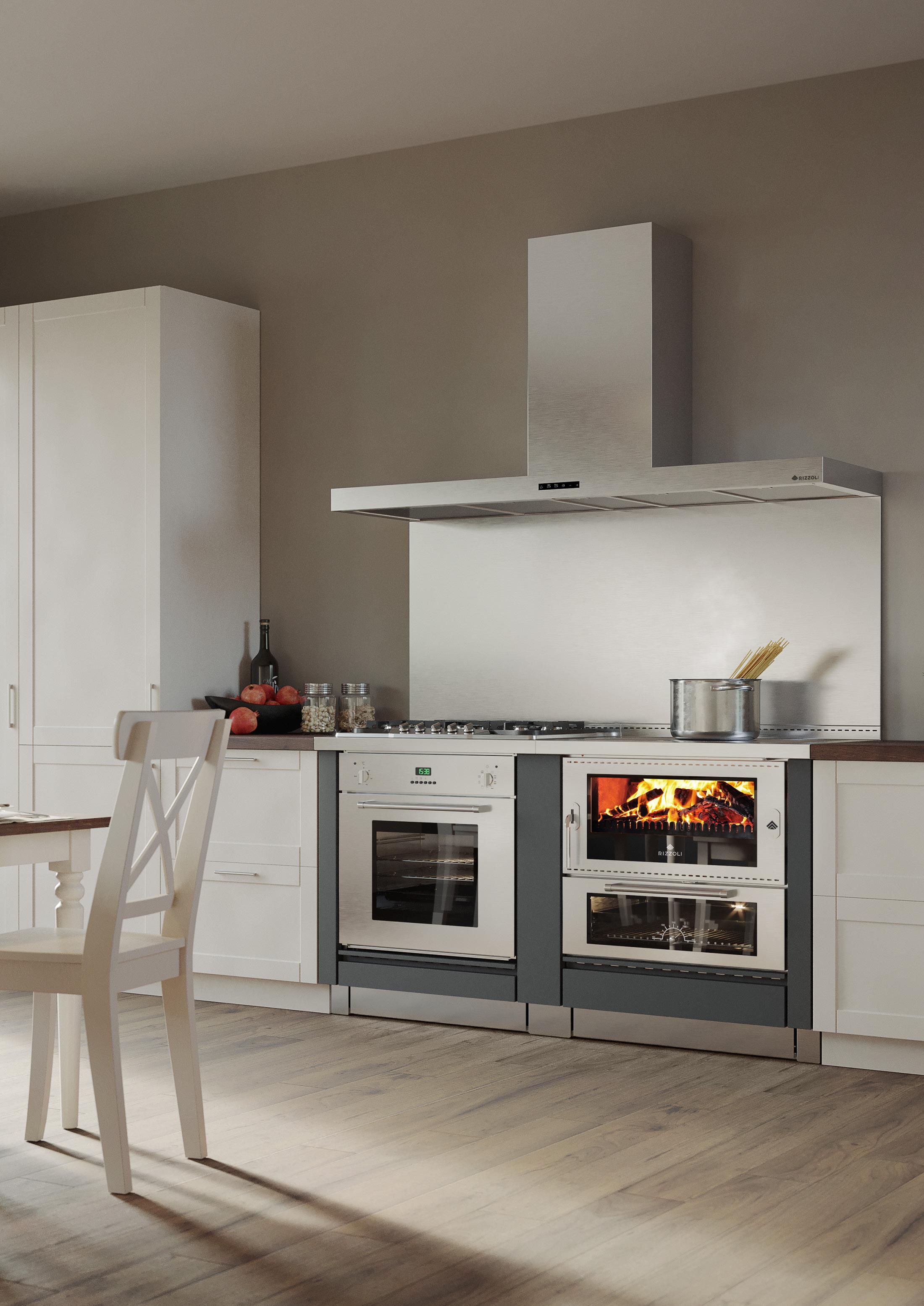 Praticità, eleganza ed esclusività sono le caratteristiche che contraddistinguono i monoblocchi con cucine e termocucine a legna Rizzoli. Grazie all’ampia possibilità di personalizzazione costruttiva e alle scelte estetiche, i monoblocchi sono la soluzione ideale per integrarsi a tutti i tipi di arredamento e permettono di avere in un unico blocco la cucina a legna, il piano cottura ed il forno elettrico. A completamento dei monoblocchi Rizzoli propone elettrodomestici da incasso di alta qualità che possono essere rifiniti con la stessa finitura della cucina a legna.