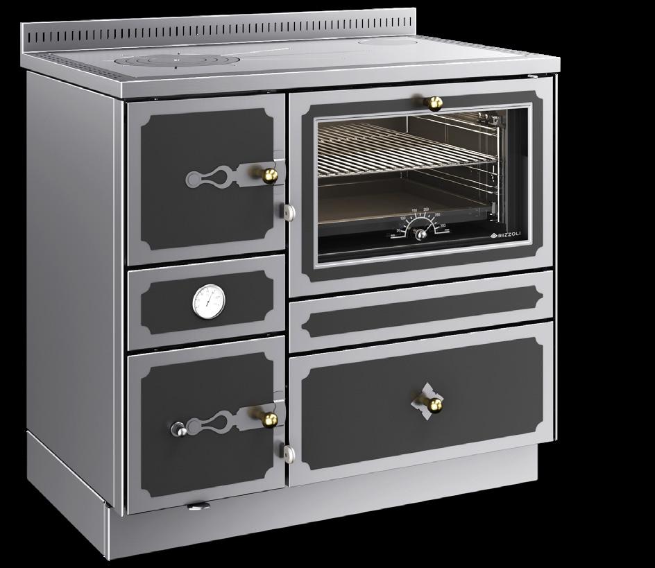 L’acciaio di qualità superiore, la camera di combustione in materiale refrattario certificato e la piastra in acciaio speciale, elementi che contraddistinguono da sempre la produzione Rizzoli, sono valorizzati al massimo grazie alle pregiate finiture di ogni prodotto.