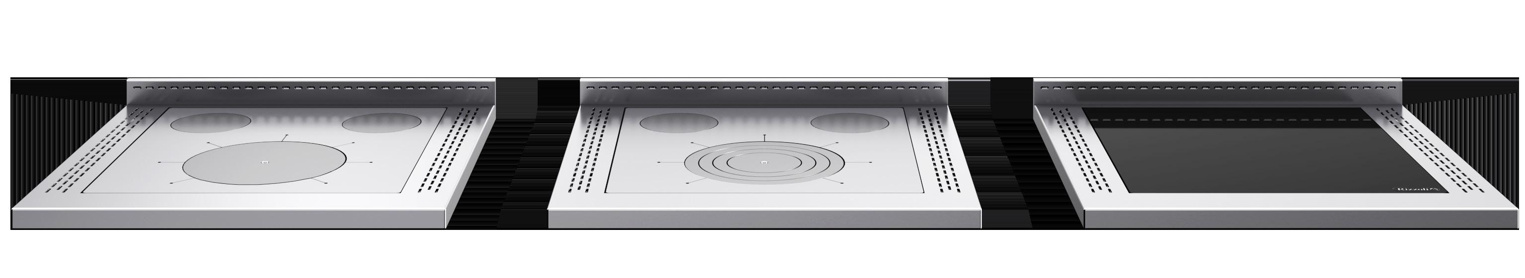 (1) Realizzato in acciaio inox. Per modelli ML 60 Rustik, ML 80 Rustik, L 90, lo zoccolo è realizzato in acciaio verniciato nero. (2) Vedi schede tecniche scaricabili sul sito www.rizzolicucine.it. (3) Solo per cucine con uscita fumi posteriore. Per le uscite fumi superiori è optional. (4) Non disponibile per piastra in vetroceramica