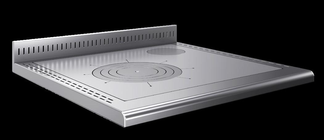 Modelli Larghezza Profondità Altezza (1) Piastra in acciaio Diametro cerchiata Altezza zoccolo Rientranza zoccolo Alzatina (hxp) Spessore piano (2)