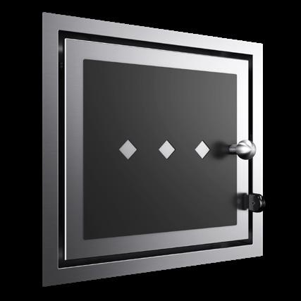 Le speciali porte fuoco con doppio o triplo vetro ceramico autopulente, abbinate a particolari passaggi e flussi di aria preriscaldata, garantiscono vetri sempre puliti durante il funzionamento e una perfetta visione del fuoco.