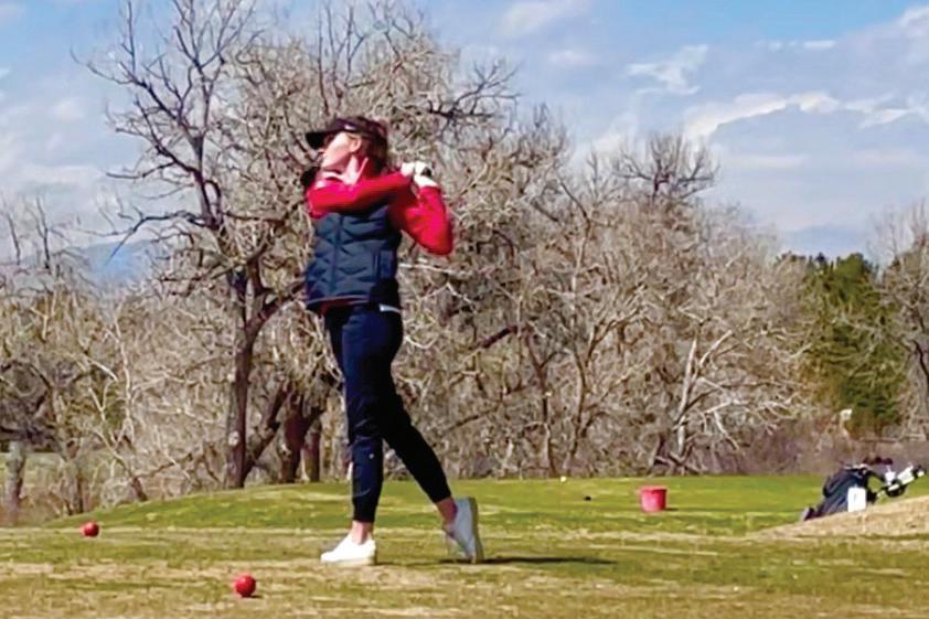 HITS THE BALL OFF THE TEE during a round of Golf at Meadow Hills Golf Course. The team looks to send a competitive lineup to regionals.