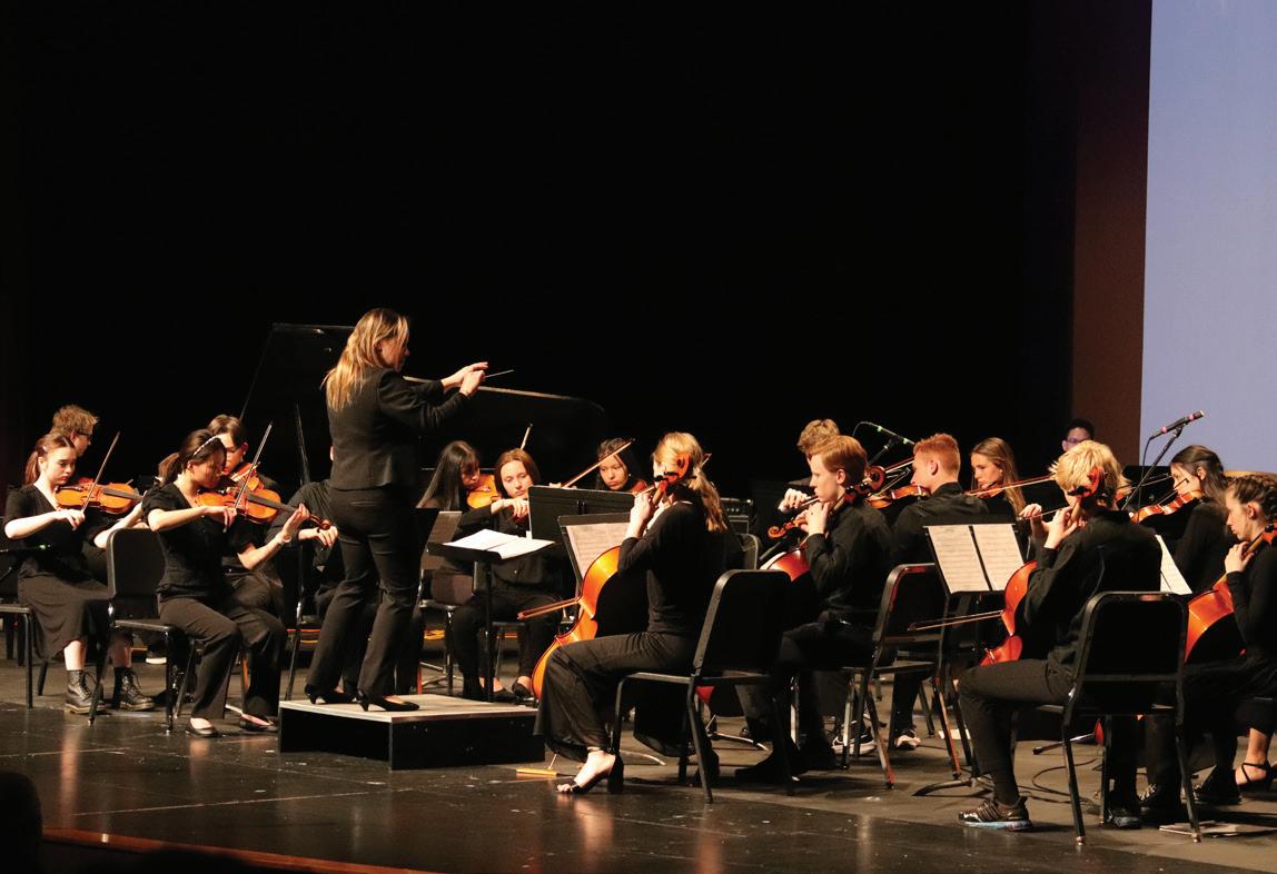 CONDUCTS THE STRING ORCHESTRA as they played in unison.