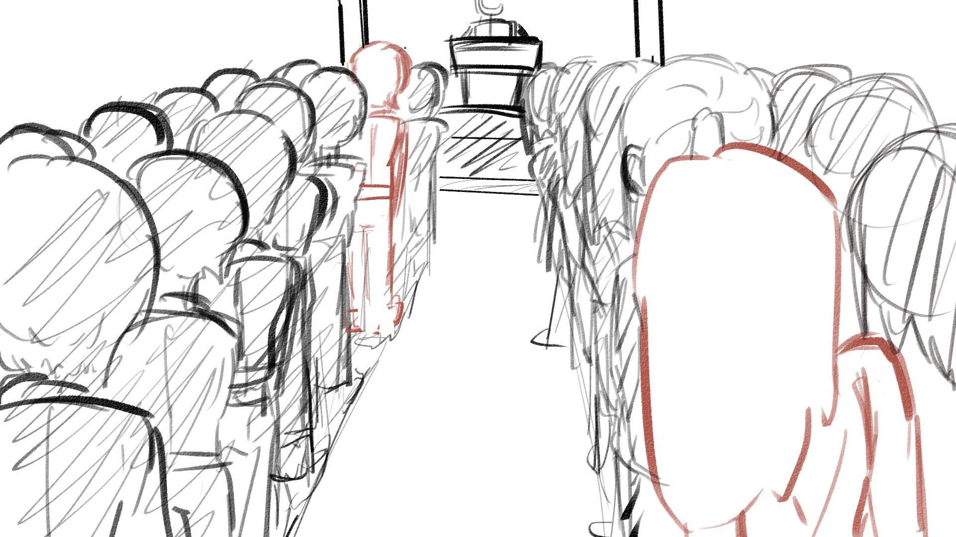 中景然後聚焦在 楊身上快速移動 到主角身上