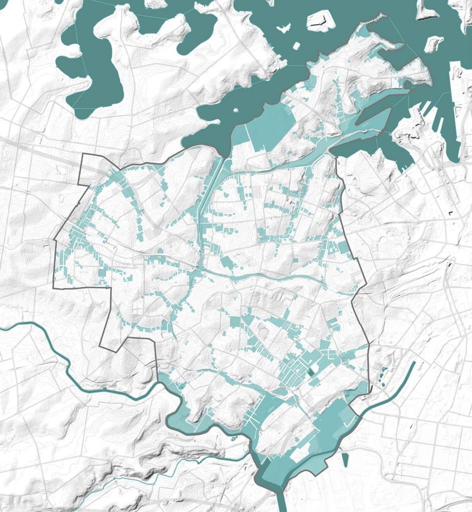 Utilising the water network and where water naturally collects, will indicate areas that will benefit from the application of a the Blue-Green Grid to reduce flooding, naturally provide water to plants and enhance the interaction between plants and water which will contribute to lowering urban heat.