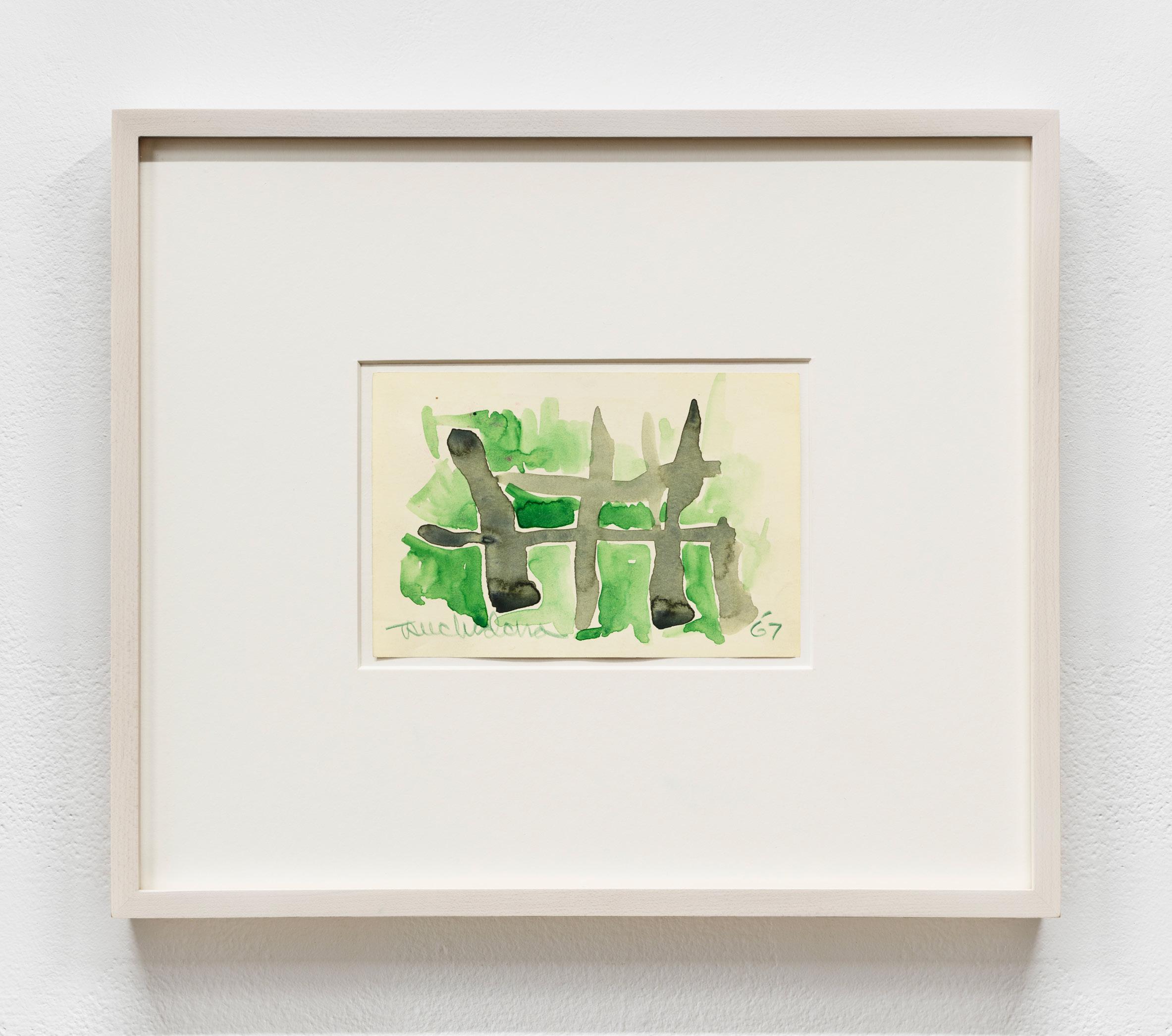 Tetsuo Ochikubo (1923-1975) was a painter and printmaker known for his accomplished craftsmanship and extraordinary sensitivity to color and texture. After serving in the U.S. Army in World War II, Ochikubo used the GI Bill to study fine art at the University of Hawai'i, the School of the Art Institute of Chicago, the Art Students League, and the Pratt Institute. Ochikubo’s unique artistic style was the product of Japanese and American influences. He visited Tokyo in 1953 to study traditional brush painting with Takehiko Mohri, incorporating these calligraphic motifs into his artistic practice. In a 1958 New York Times article, Dore Ashton described Ochikubo “holding colors to their most subtle tonalities and forms to their most ornamental simplicity. There is in this work a quiet effort to reduce experience to its essentials.” His work was included in the 1959 Whitney Annual. Ochikubo received an MFA from Syracuse University in 1968, where he also taught as a professor.