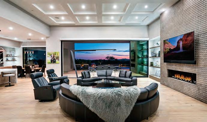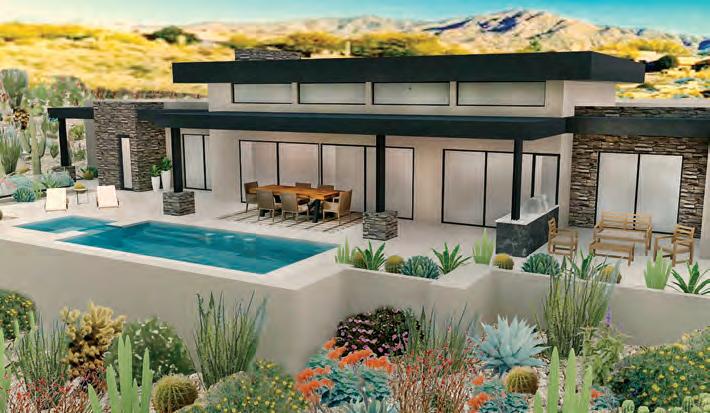 Nothing was overlooked and everything was upgraded in this Dove Mountain beauty! Large great room with vaulted ceilings, chef's kitchen, spa-like bath, and 4-car garage. Enjoy stunning sunset views from the resort backyard featuring a large covered patio with travertine tile, artificial turf, a custom pool with a water feature, a swim-up bar, and a sunken outdoor kitchen. TUCSON - $1,397,000 3479 SQ. FT. / 4 BR / 3.5 BA