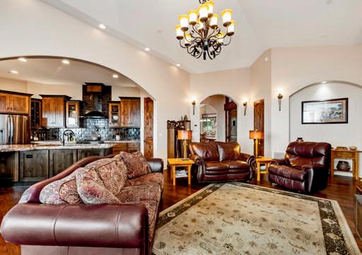 This exquisite estate offers Old World charm, quality craftsmanship, and a warm and inviting atmosphere. With a golf membership available, this home is filled with thoughtful design and fine finishes, including beautiful wood, stone, tile, and bronze. The interior features custom lighting, arched and coffered ceilings, a British Colonial style bar, and a grand living room with a limestone hearth and custom cabinetry. The master suite is luxurious, and there are three ensuite guest bedrooms. The home also boasts two grand offices and a variety of formal and casual spaces for entertaining and living. Enjoy city, sunset, and mountain views from the resort-style patio and secluded view terrace.