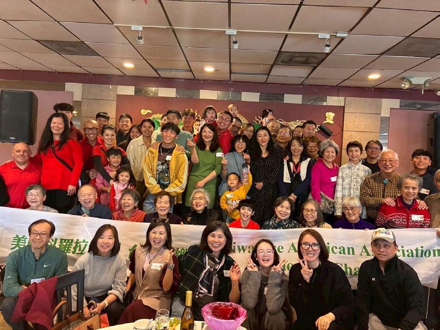 鄉親們圍桌共享應景年菜,席間話家 常、敘情誼,展現海外臺灣人團結互助、 溫暖團圓的精神。餐會中特別安排地名 有獎徵答活動,鄉親踴躍搶答、互動熱 烈,笑聲不斷,氣氛十分歡樂。