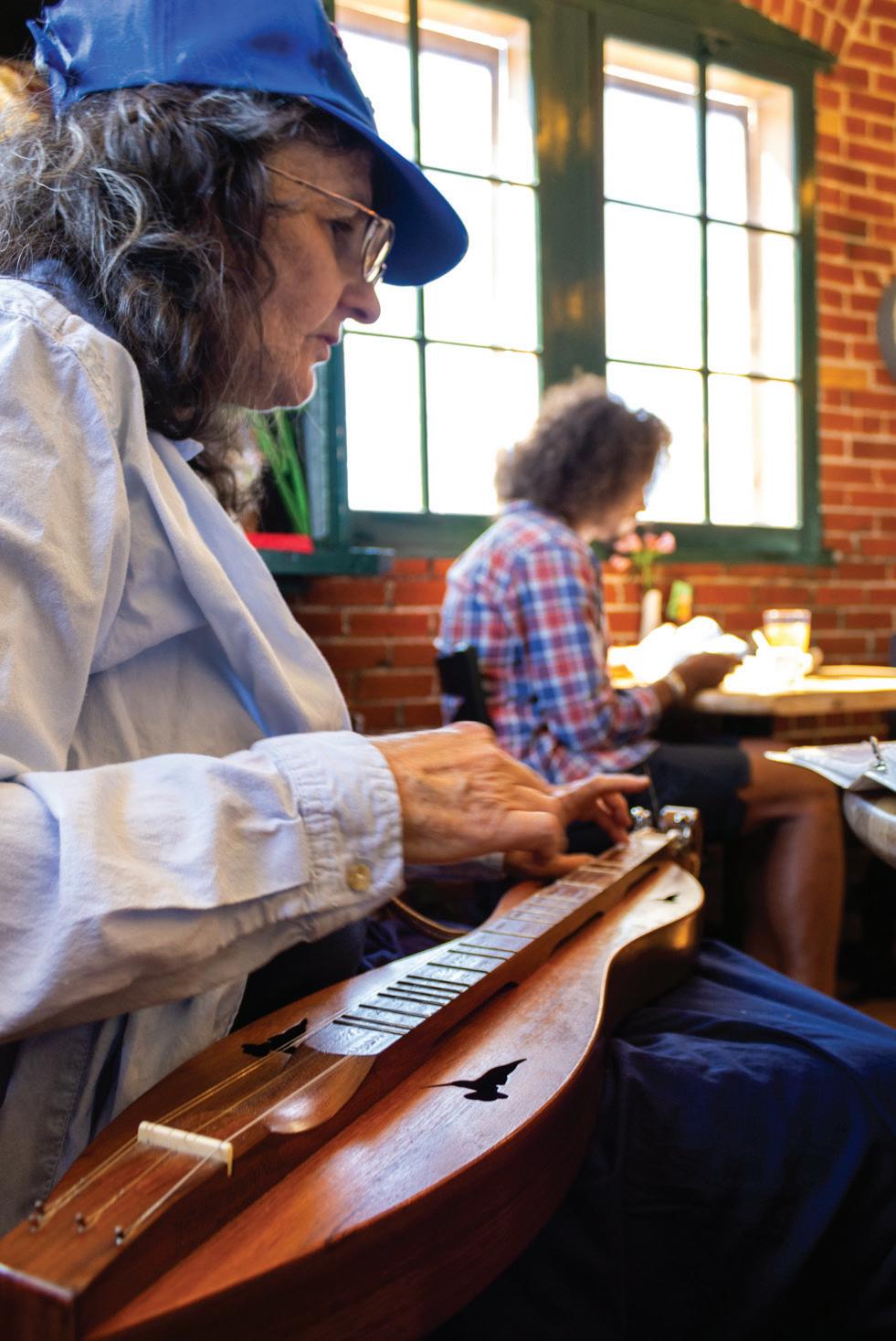 (Top) Spring Trever’s plays a song on her Mountain Dulcimer at FoCo Café, Sep 9. “I simply play it because its fun,” stated Trever’s.