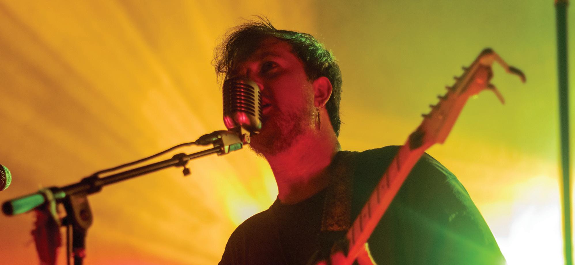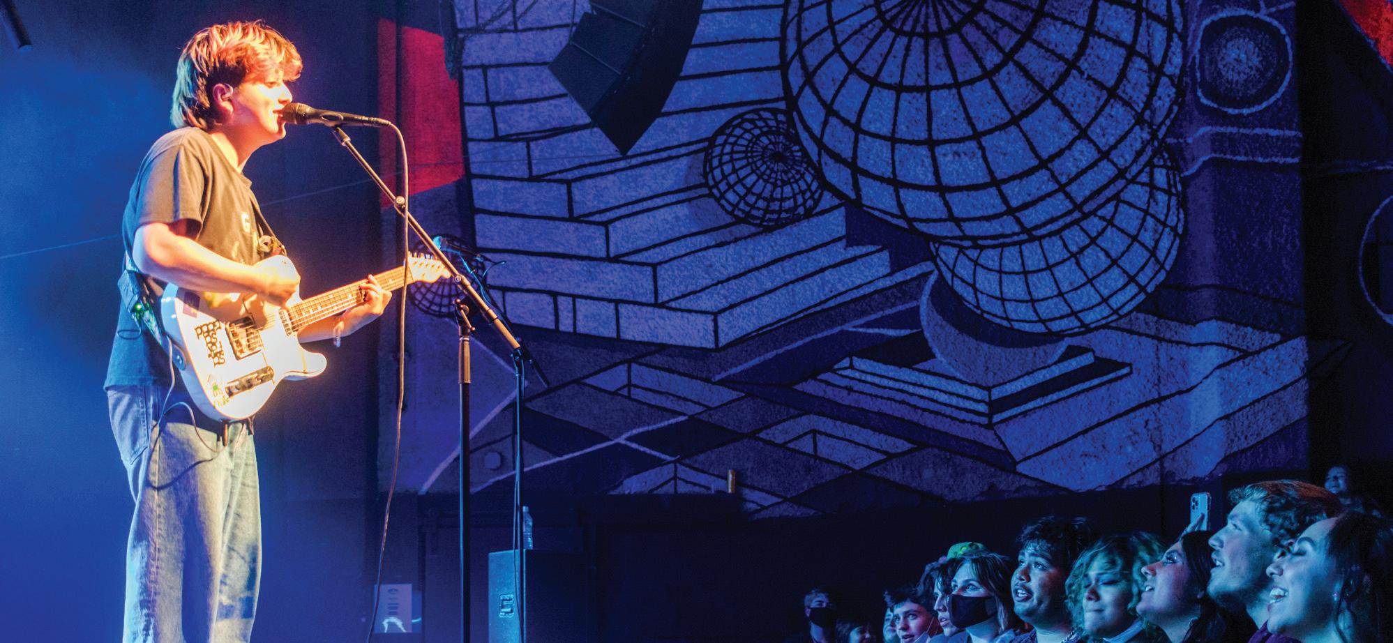 (Page 24 Top) Caleb McFadden, singer and guitarist for Chess at Breakfast, performs during the Farewell World Tour concert at the Aggie Theatre July 2, 2021.