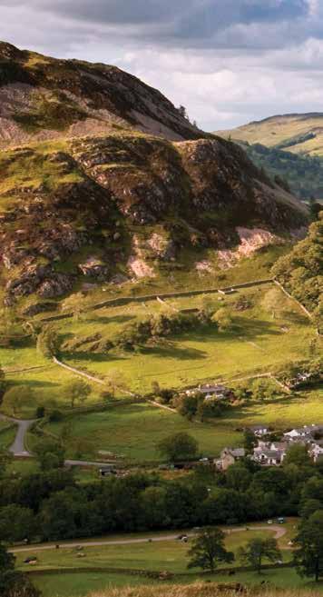 (top) Ullswater Lake curves through the mountains of the English Lake District at Glenridding, looking down on the lake from the crags of Birkhouse Moor. (bottom, left to right) Dove Cottage, home of the poet, Willam Wordsworth, in Grasmere. Across the North York Moors and up the Pennine way to Malham. Curious Herdwick sheep in Great Langdale. Ingleborough Mountain with Malham's unique limestone formations in the foreground.