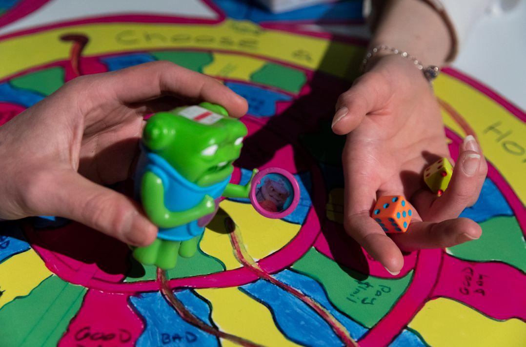 Julie Watkin’s creative practice of photomontage engages with trauma using devices of narrative, mythology and contemporary cultural references to the femme fatale. The central premise of her life’s work is implicitly acknowledging that traumatic experiences both permanently mark us and make us. The collage in the exhibition, Pandora Series 2: Adolescent Pandora; Pandora becomes a vamp, no (i), inverts and retells the Greek story of Pandora, reclaiming this character’s agency and power and transforming her from threatened victim into mysterious threat. The engagement with text and identity is further unpacked through Jenny Hickinbotham’s exploration of the Cunningham Dax Collection — a collection of artworks created by people who have a lived experience of mental distress or psychological trauma. In 2022, Hickinbotham researched the knowledge held within this collection, exploring how careful engagements with the archive could amplify the practices of artists in the collection. By counterpointing a self-portrait and poem by Graeme Doyle with her own self-portrait and song lyrics, Hickinbotham begins a conversation with the late artist—not one that is spoken, but one that is drawn, written and sung. In addition to her response to this archive, Hickinbotham also shares with us another playful archive — a board game informed by her lived experience where we are invited to play our way through both the good days and the bad.