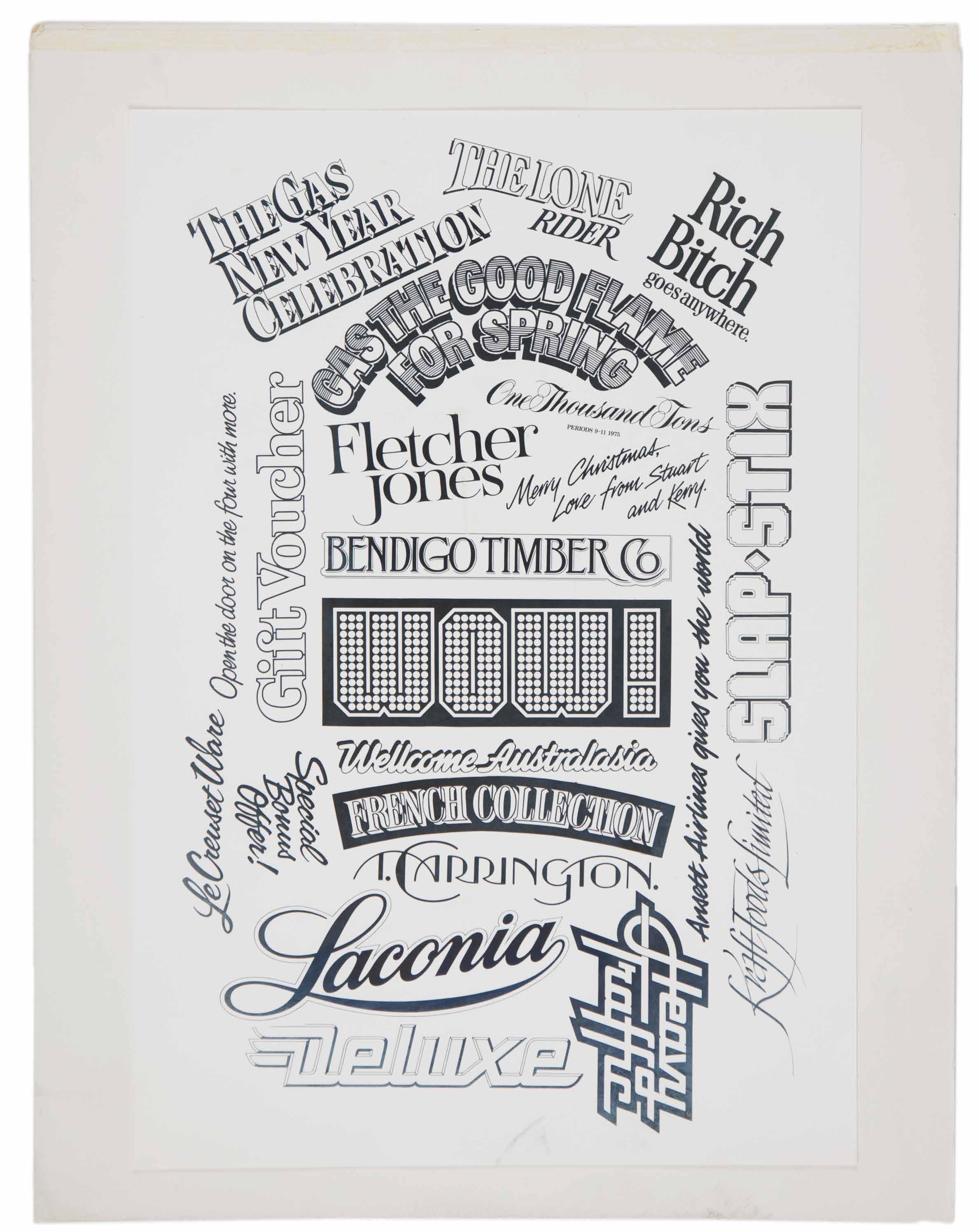 So it was timely that the rmit Design Archives should acquire some of the work of hand lettering artist Godfrey (Geoffrey) Fawcett, as part of its larger collection of the work of prominent graphic designer David Lancashire. David’s artful approach to design, often incorporating illustration, called for a comparably human touch to the typographic voice of the corporate identity and packaging projects that David Lancashire Design (dld) undertook. It was Fawcett who fulfilled this role, working alongside Lancashire for many decades as a freelance lettering artist.