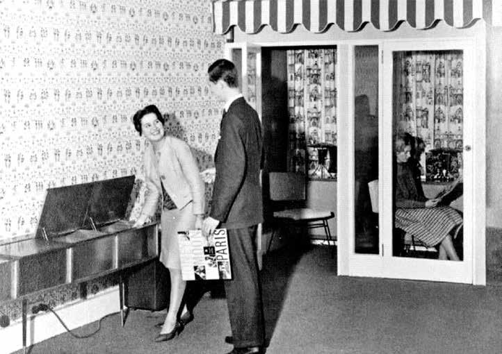 Listening booths were installed in the Flinders Lane display centre, an example of the innovative marketing techniques employed by the World Record Club, c.1960.
