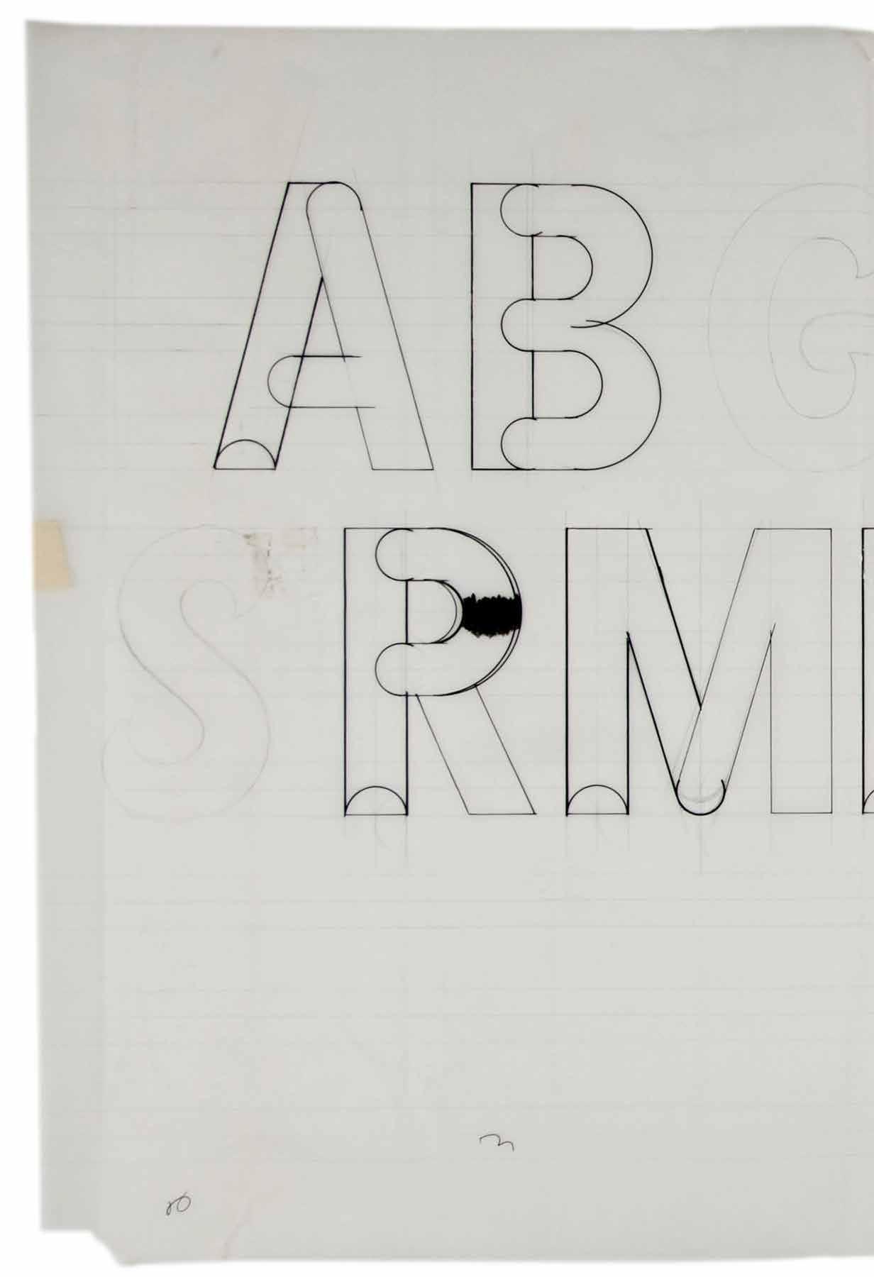 There is a practical economy of labour in seeing a word that has not been drawn in order but in its ‘typographic parts’. Its primary role as ‘production artwork’ is not to immediately seduce the viewer through a completed beauty but to be the foundation of its print reproduction.