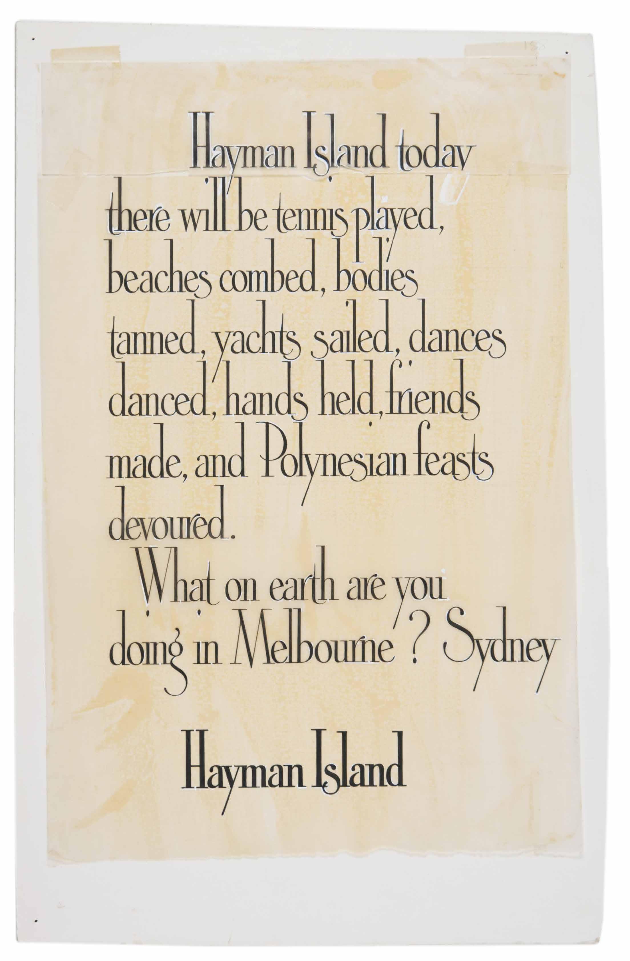 This page Lettering for Hayman Island Press Advertisement Godfrey (Geoffrey) Fawcett c. 1980s