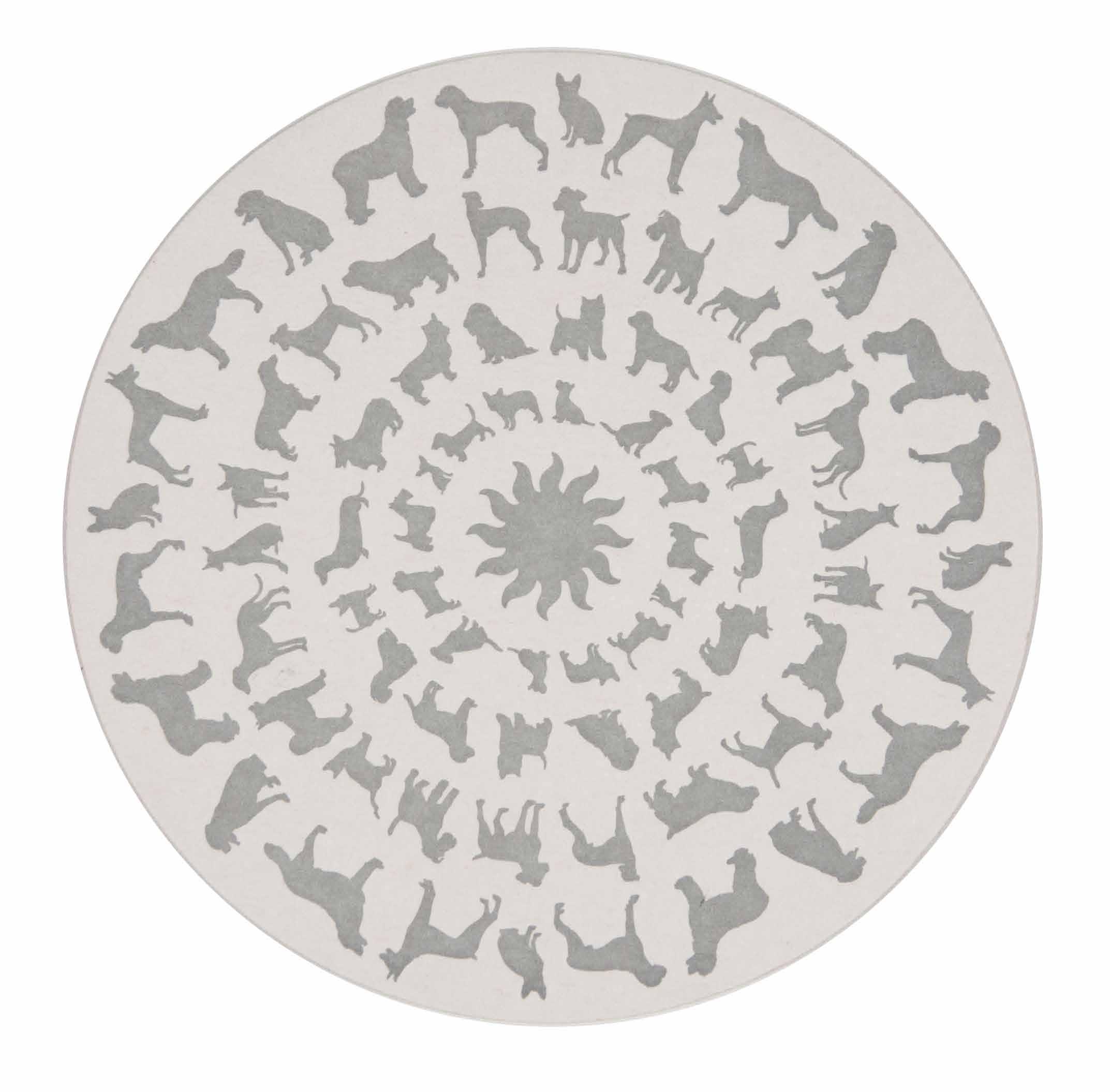 Above A letterpressed Christmas card designed by David Lancashire in 2011 for the family owned Melbourne paper company K.W. Doggett. Led by the company’s name Lancashire’s design features numerous dog breeds and, typical of his humour, one sneaky cat. The card was presented to clients with its own