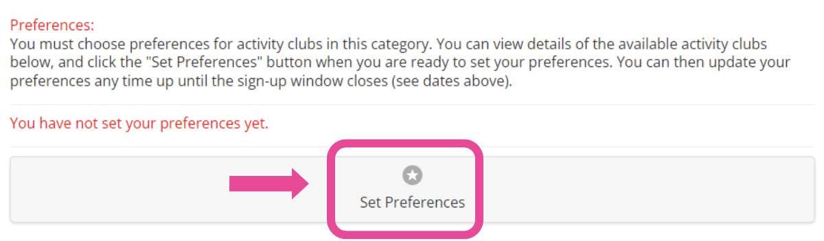 The next step is to click on Activities to select your clubs for the term. You can view the event details (date, time, location, and a short description). Please check all details thoroughly including costs that may be incurred. Once certain which activities youwouldliketosignupfor,youcanset yourpreferences.