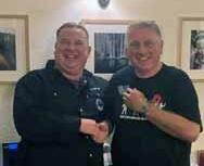 RMT President Alex Gordon presented long-service awards to branch members Phil Scott
